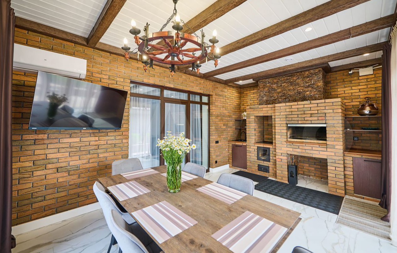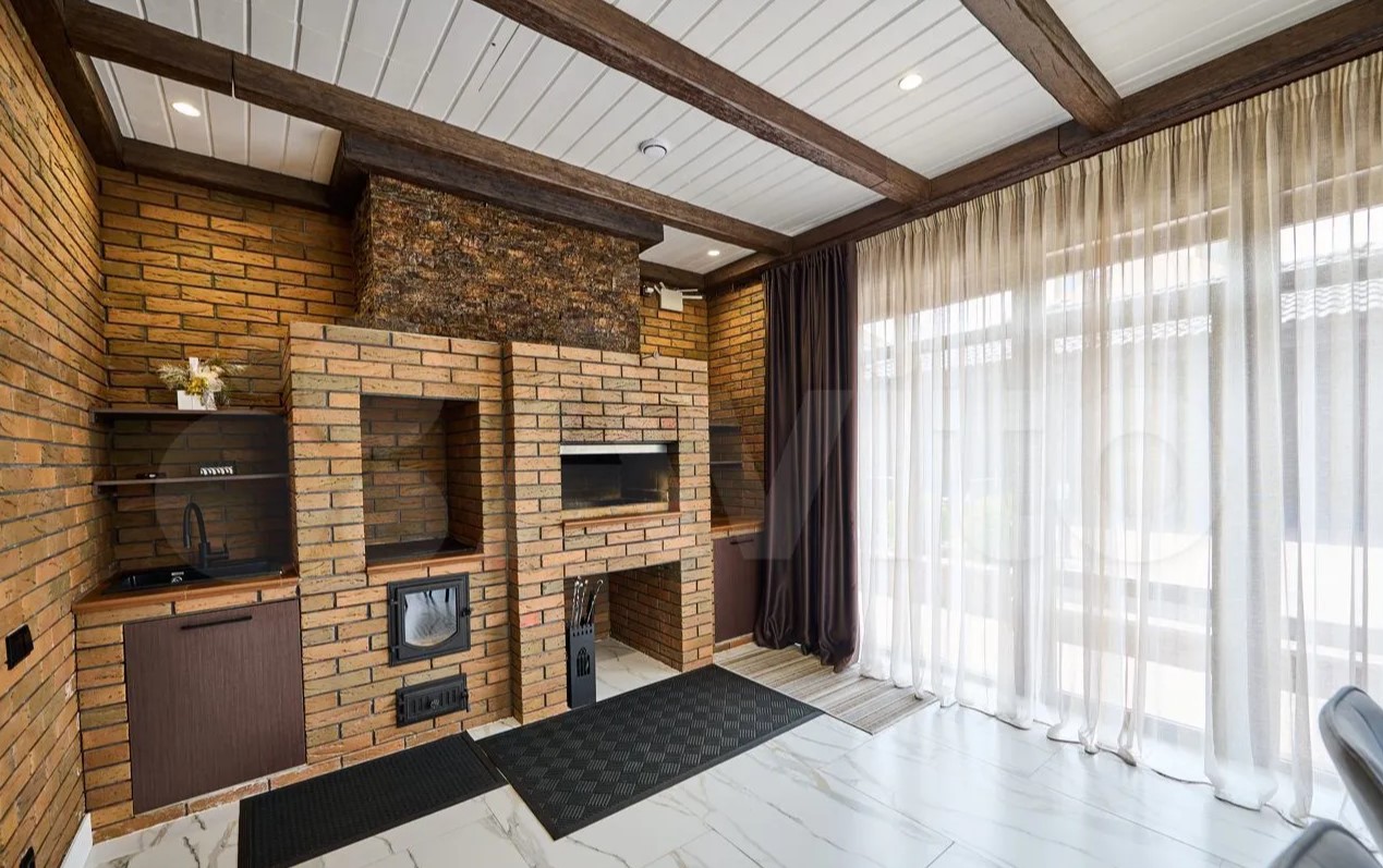 Дом за 33 млн рублей расположен в тульской деревне Федоровке. Внутри — семь комнат. Есть камин, баня на дровах и купель, смонтирована система кондиционирования.