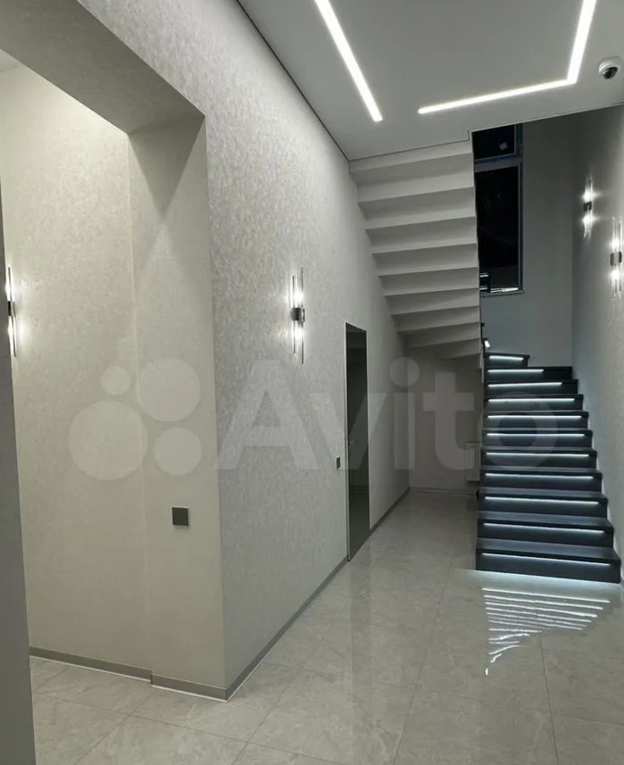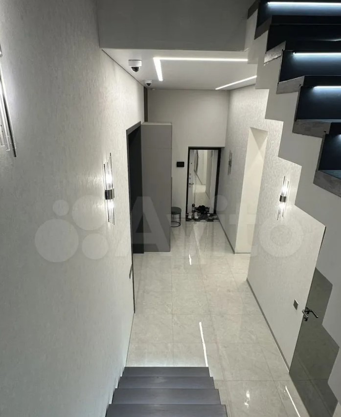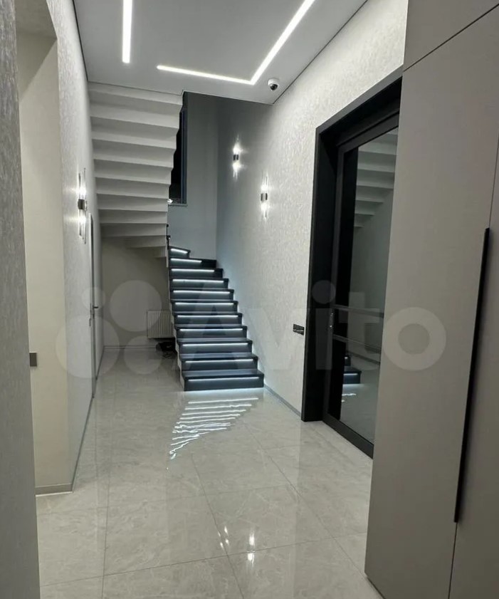 В самом доме есть бассейн с системой очистки воды и подогревом. Встроена система «Умный дом». В гараже помещаются два автомобиля, все двери в доме зеркальные, установлены полы с подогревом.