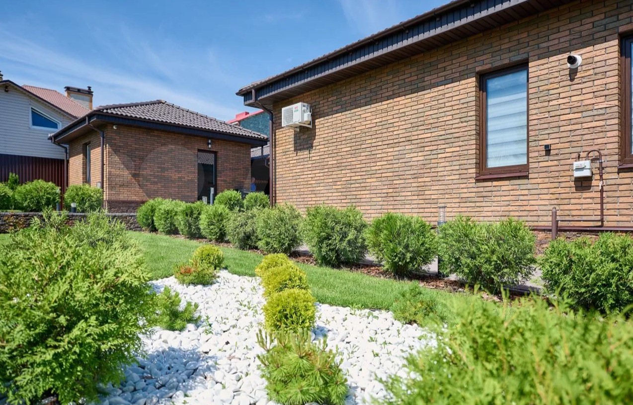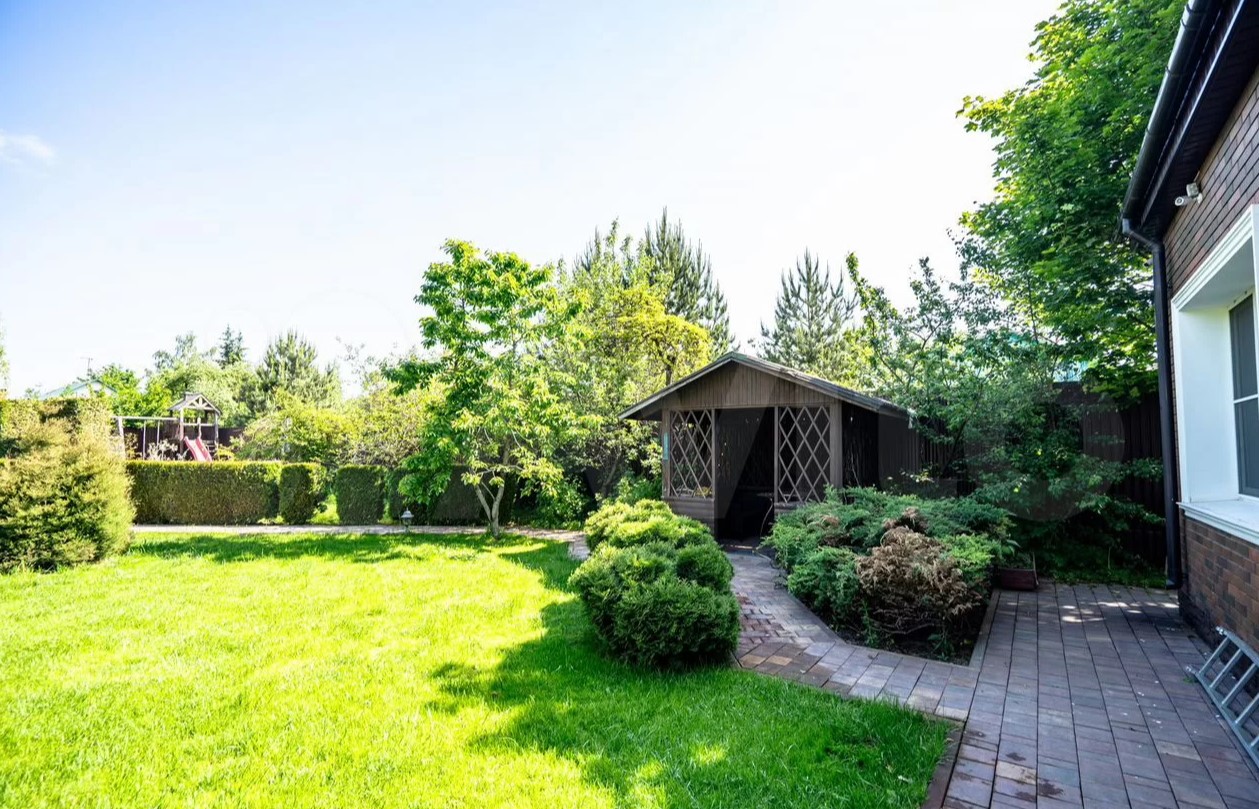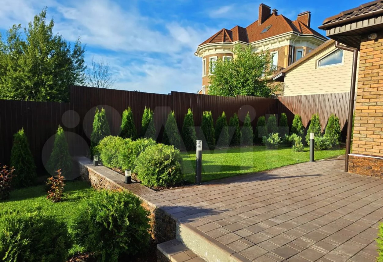 На участке есть зона барбекю, детская площадка, пруд с плакучей ивой, фруктовый сад с яблонями, грушами, смоковницами, грецким орехом, сливами, облепихой, малиной, ежевикой, смородиной, жимолостью и крыжовником. Оборудованы двухэтажный кирпичный гараж на две машины, две теплицы и домик для хозяйства.