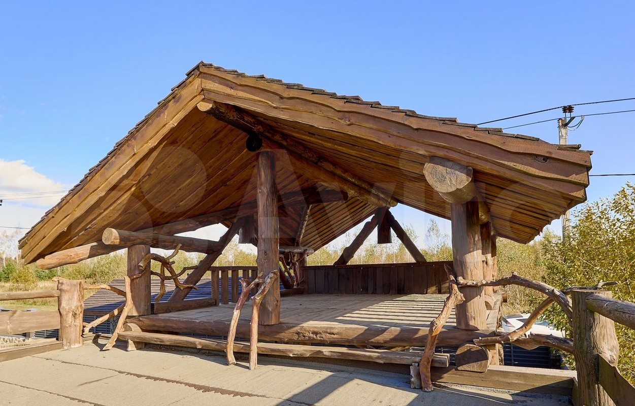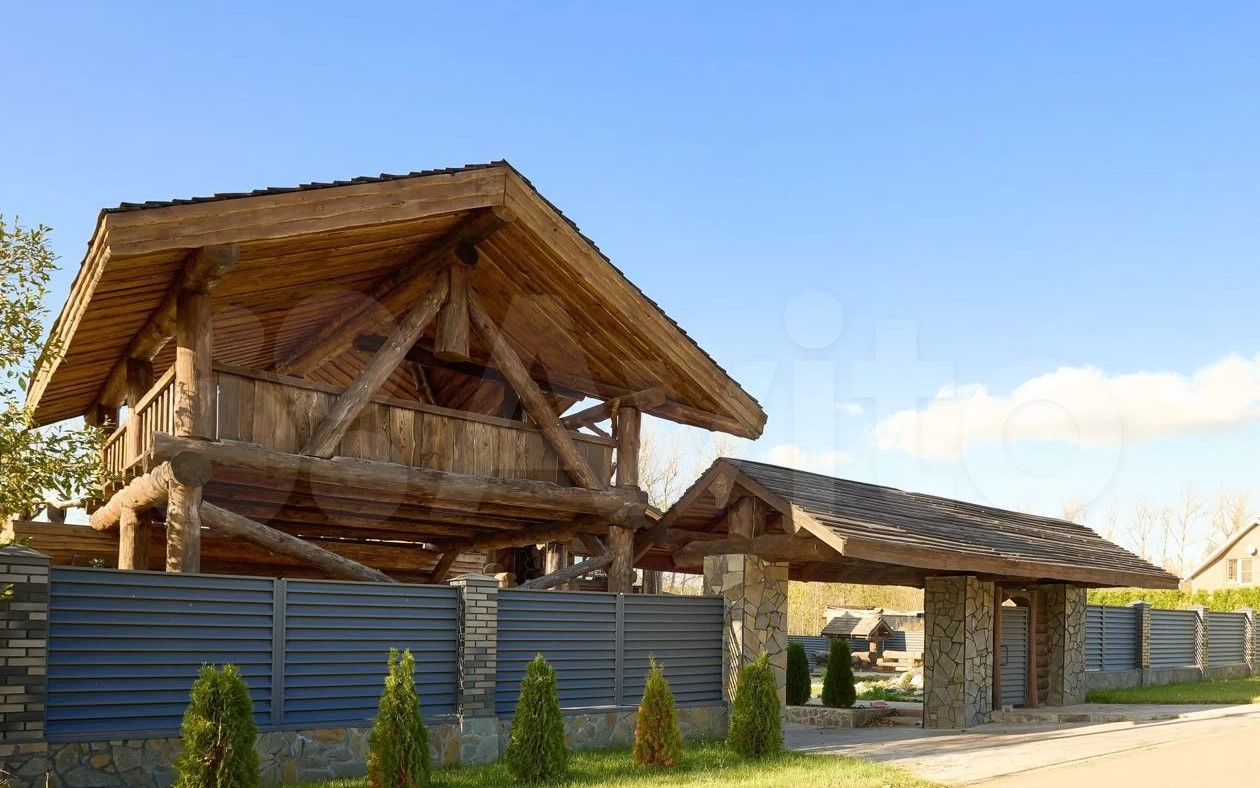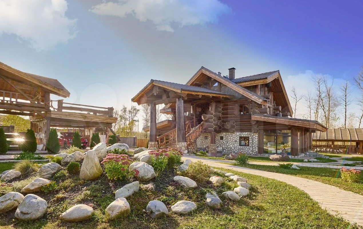 Есть на территории и гостевой дом с гаражом. В нем сложена русская печь с лежанкой и топкой, рядом установлена печь-барбекю с вытяжкой для шашлыков. На участке также установлены вольер для собак, качели, баскетбольная площадка. Есть возможность для игры в мини-гольф. Высажены голубые ели, сибирские кедры и лиственницы. В 150 метрах от дома — озеро с оборудованным спуском в воду.