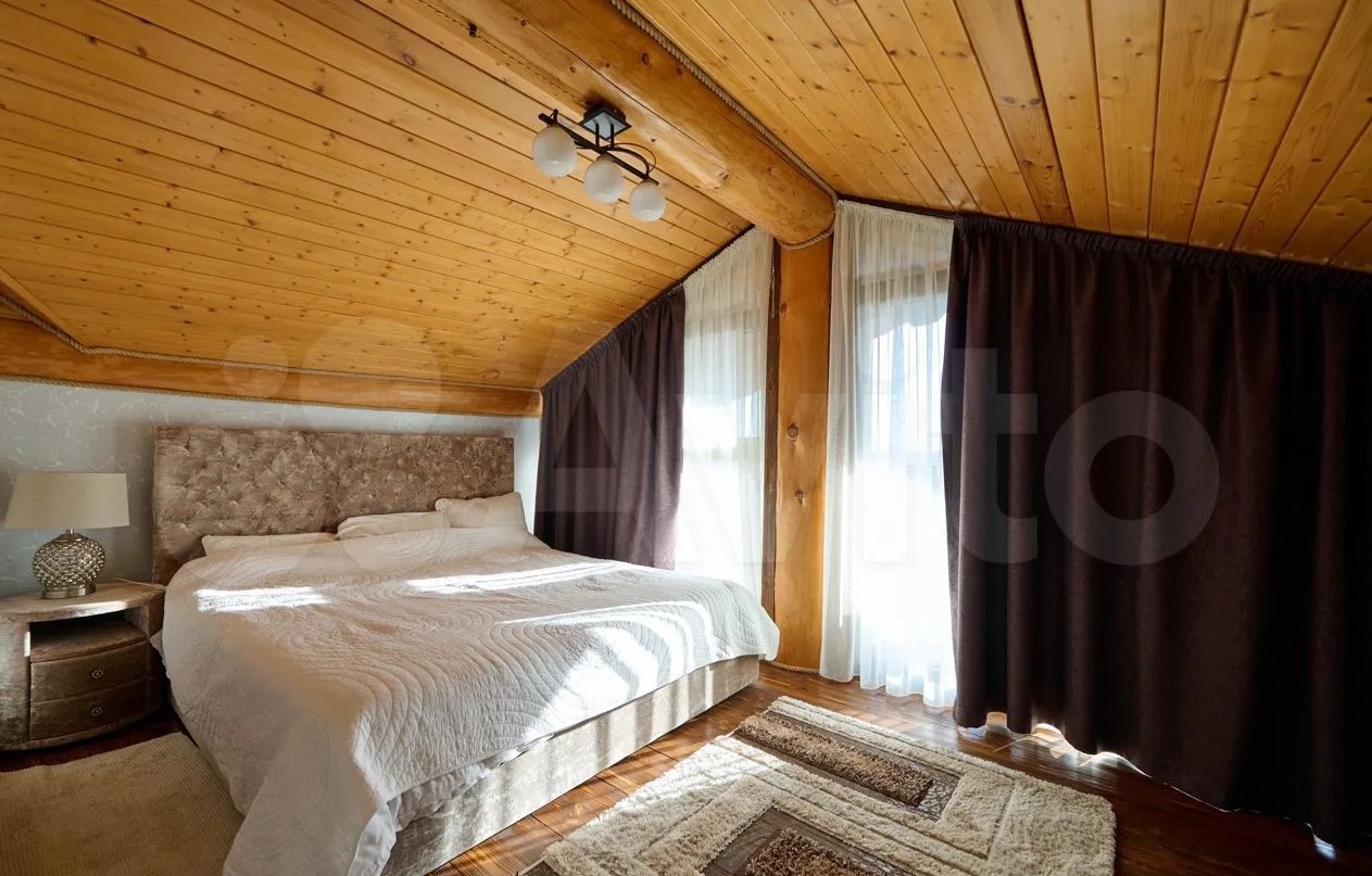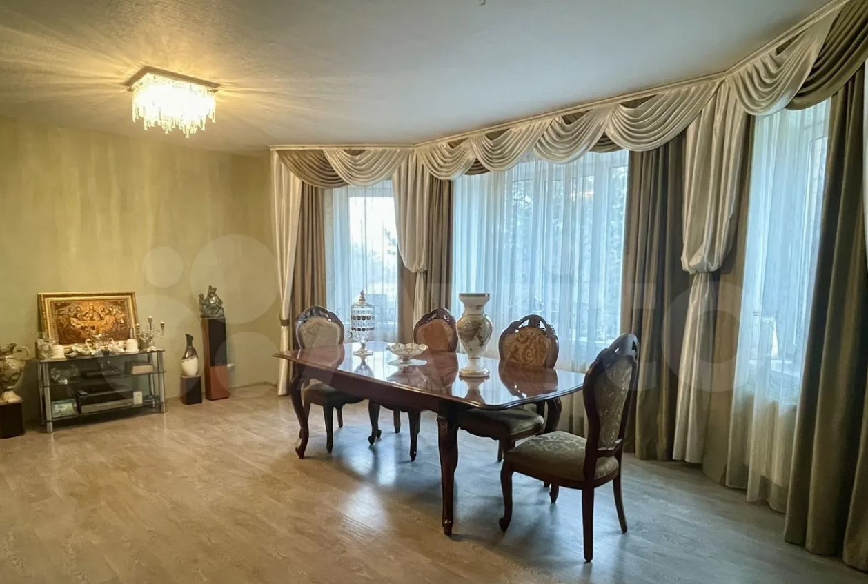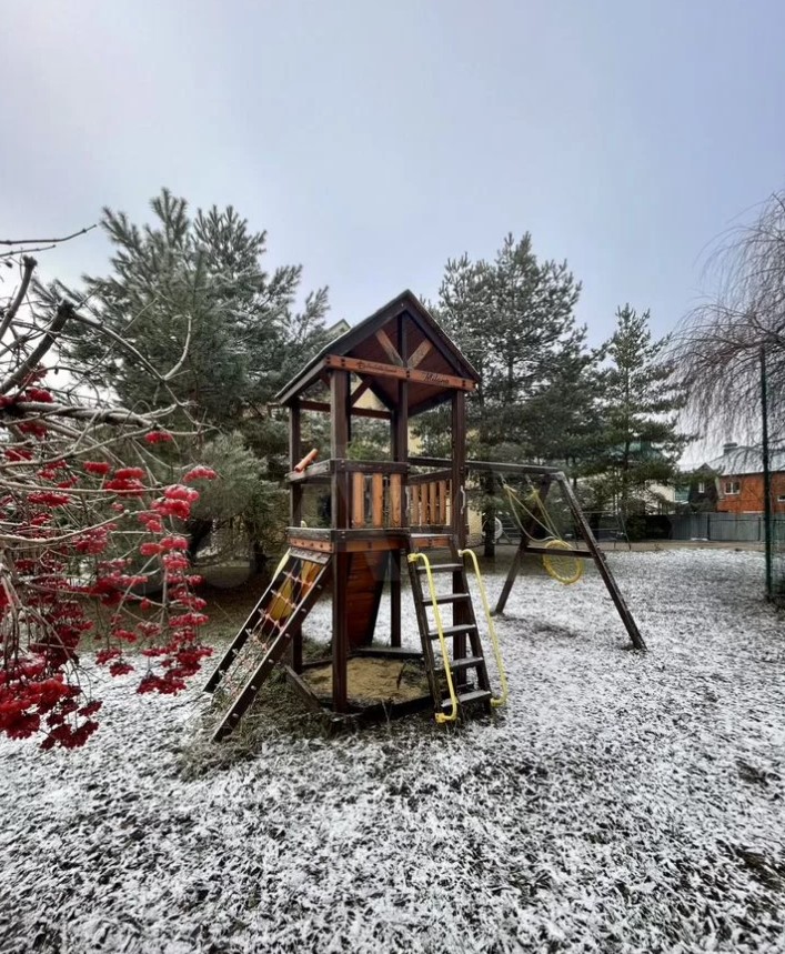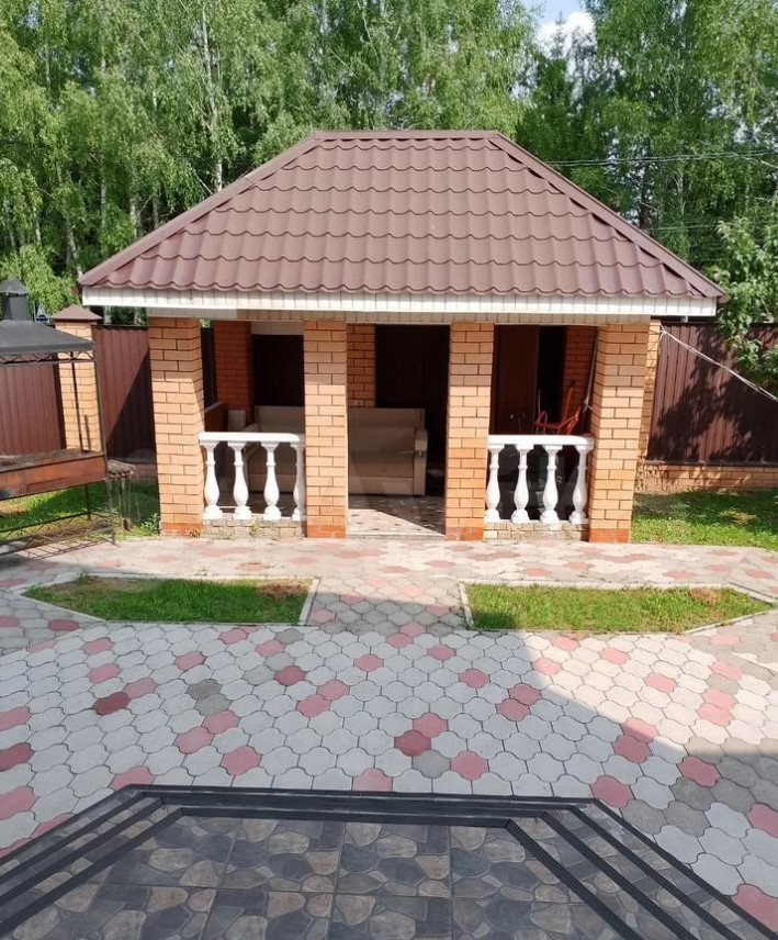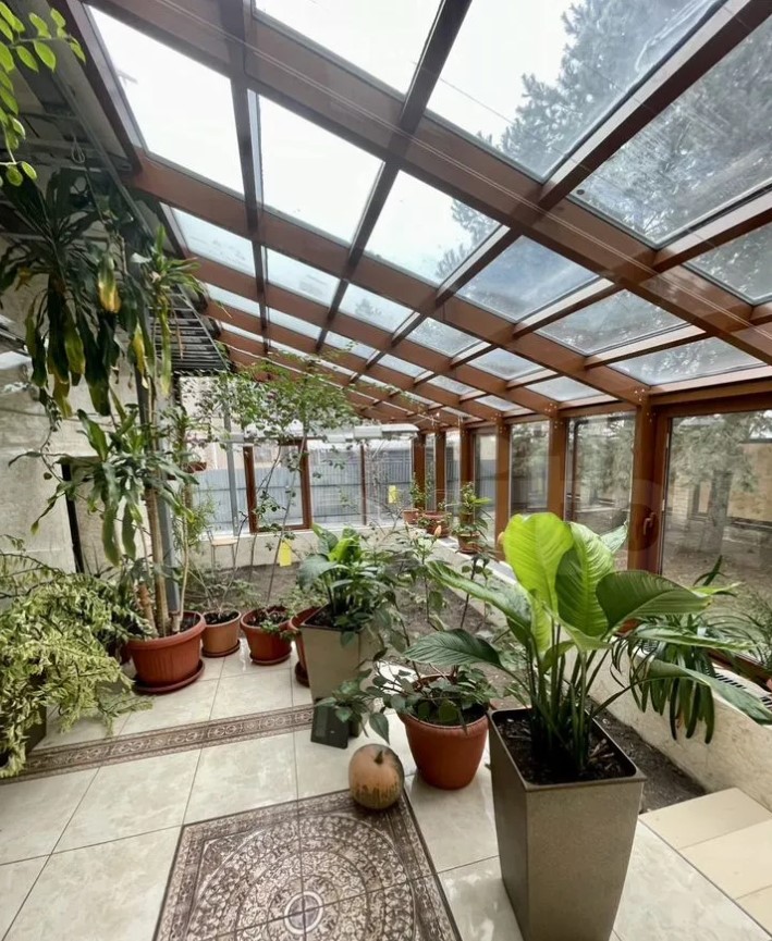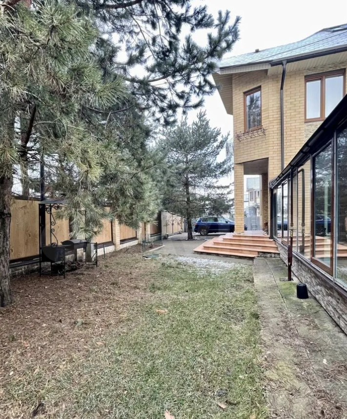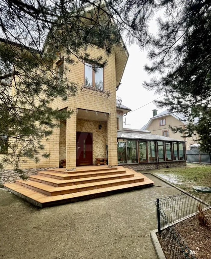 Дом расположен на 3-м Дачном проезде и продается за 32 млн рублей. На первом этаже расположены прихожая, холл, кухня-гостиная с выходом в зимний сад, зал, гостевая спальня, раздельные санузел и душевая, прачечная и бойлерная. Выше — четыре спальни, гардероб, ванная комната, душевая и два санузла. Есть мансарда с двумя комнатами. На участке расположены баня с бассейном в отдельной постройке, большая беседка и зона барбекю.