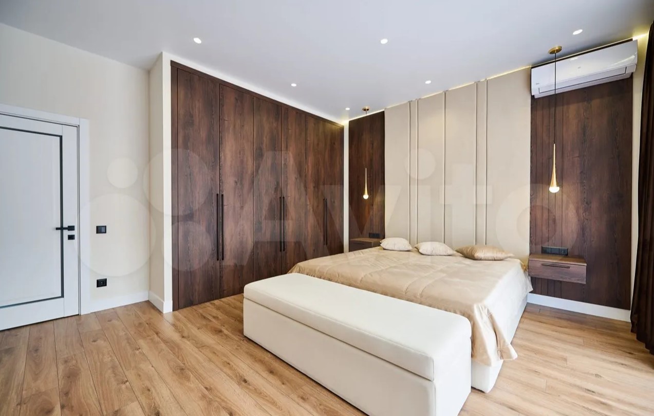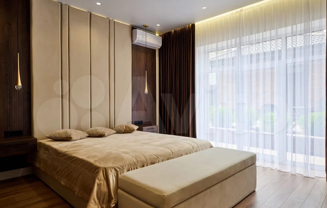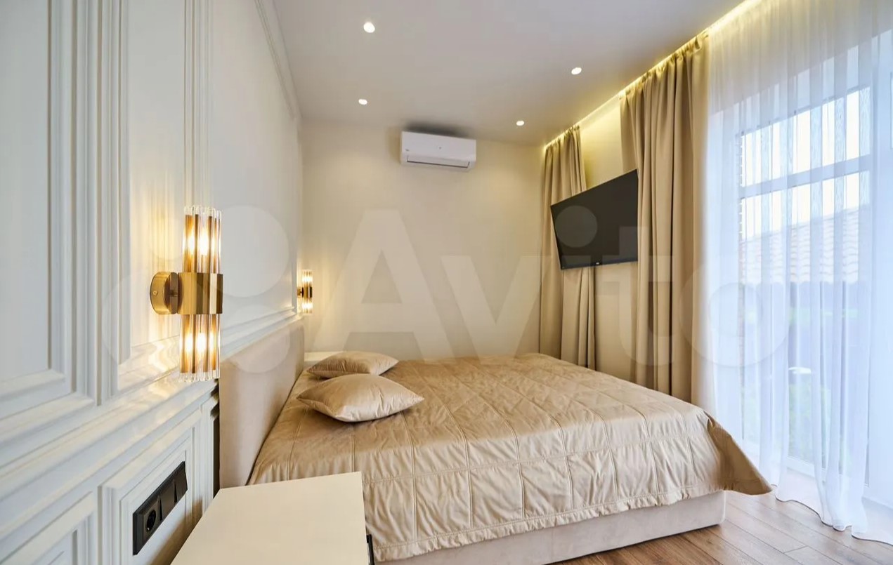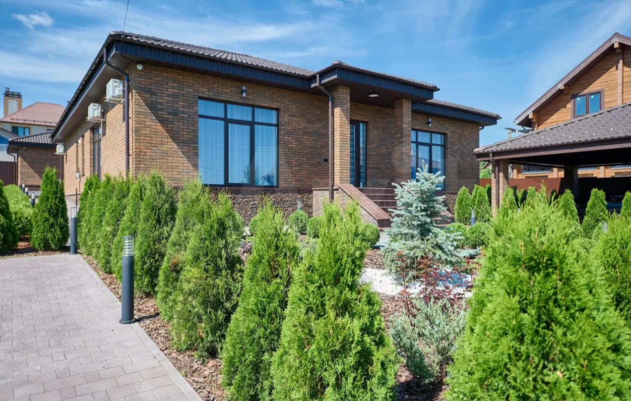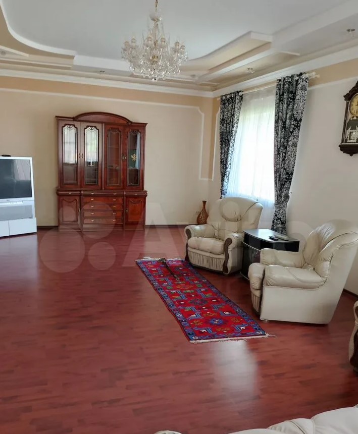 Этот дом тоже находится в Басово-Прудном. Правда, стоит чуть дешевле — 49,99 млн рублей. У коттеджа всего один этаж. Внутри расположены гостиная, мангальная с зоной с казаном, гардеробная, две ванные комнаты и четыре спальни, домашний кинотеатр, панорамные окна. Выполнен дизайнерский ремонт. Мебель и техника остаются новому владельцу.