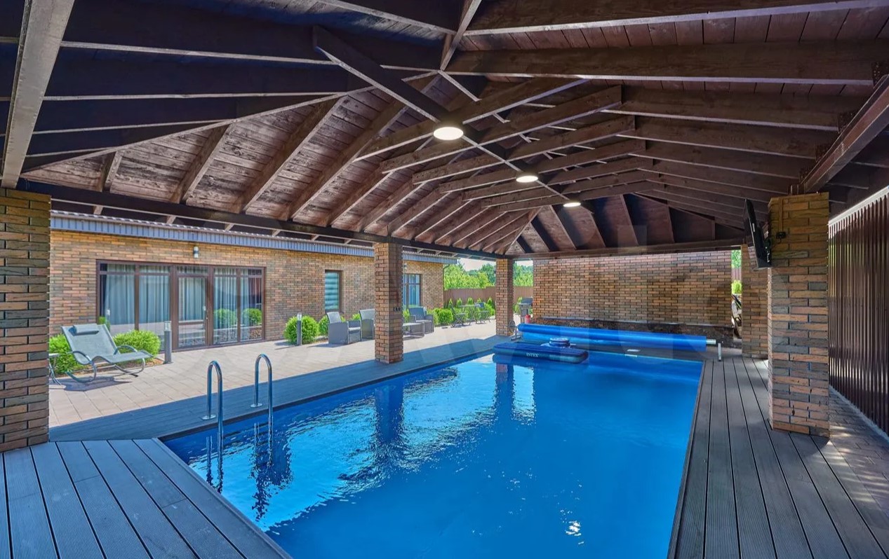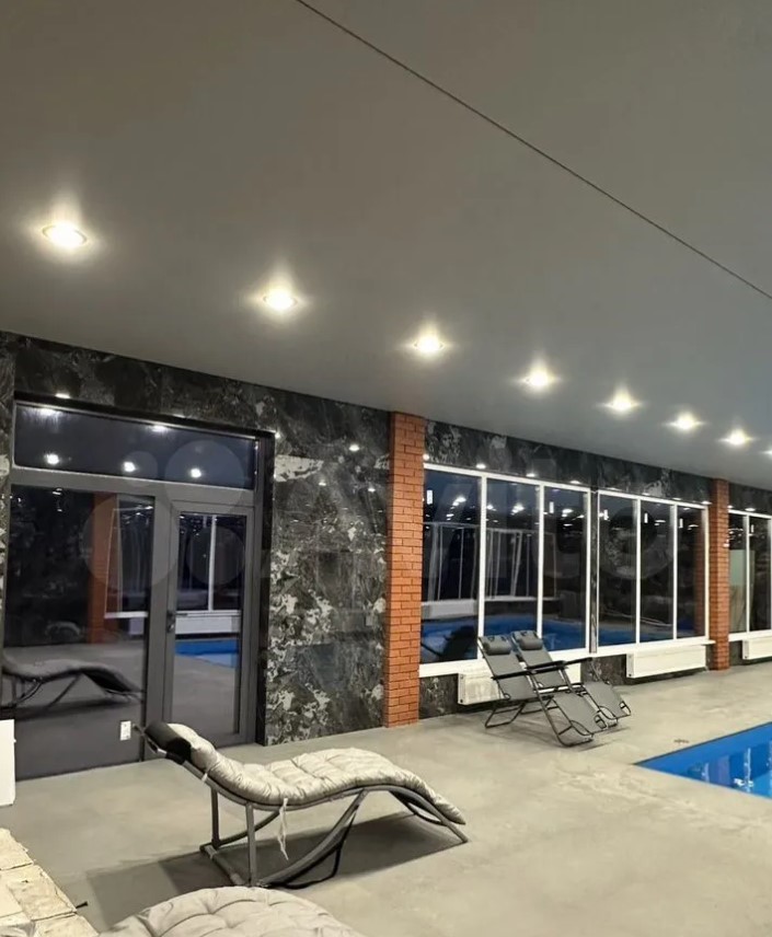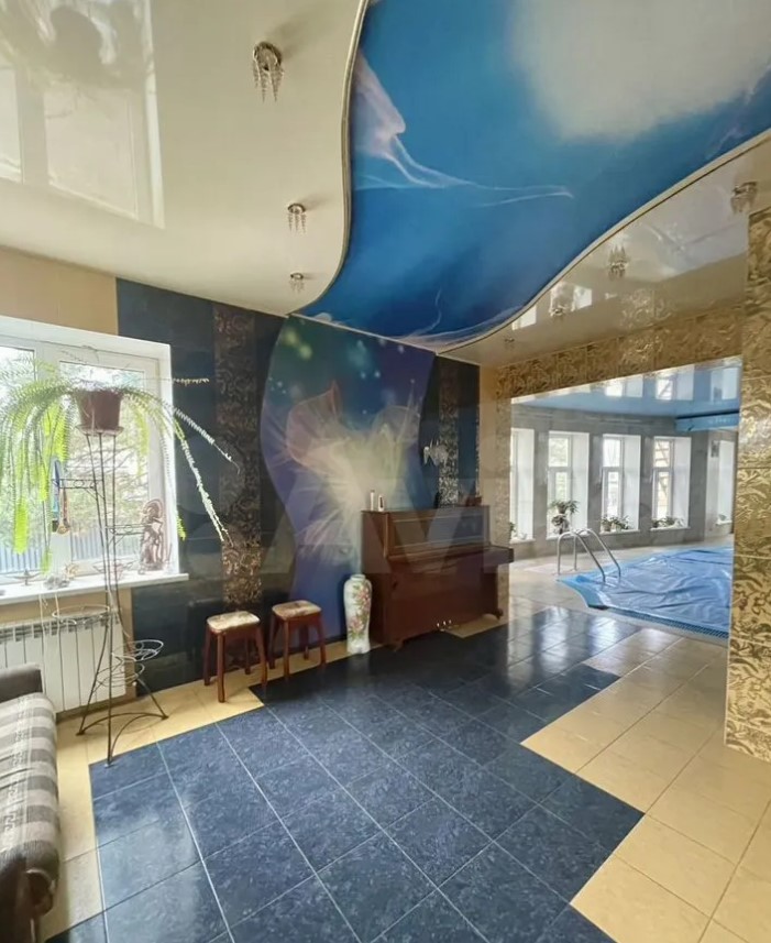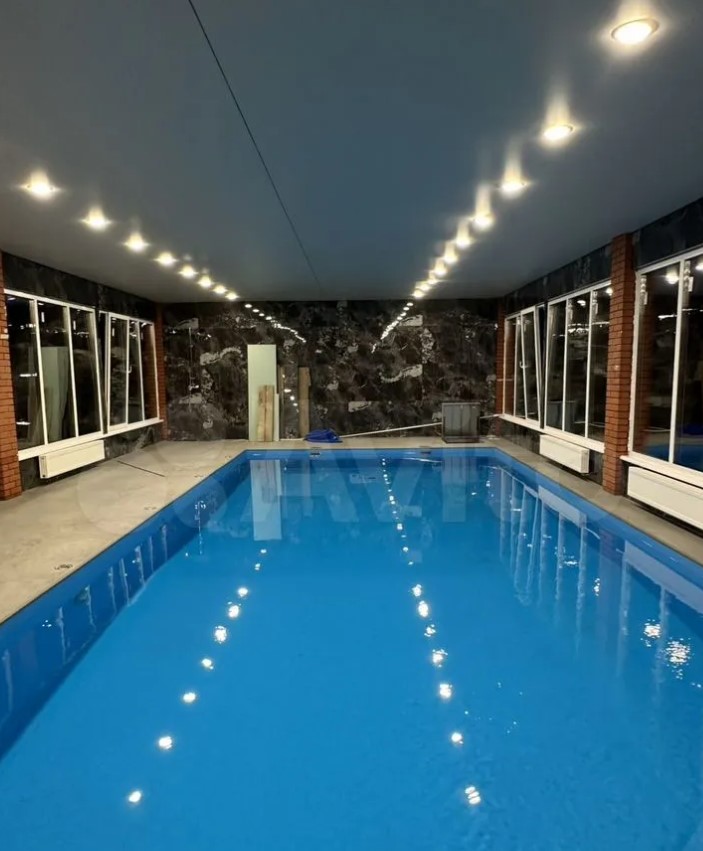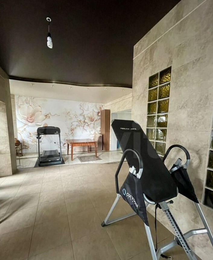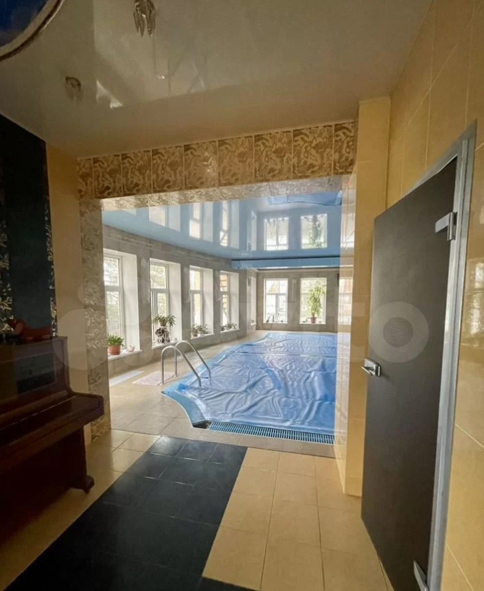 Коттедж расположен в тульском поселке Новая Мыза. Потенциальному покупателю он обойдется в 35 млн рублей. На первом этаже расположена зона отдыха с бассейном, сауной, санузлом, тренажерным залом, кухней и панорамным зимним садом.