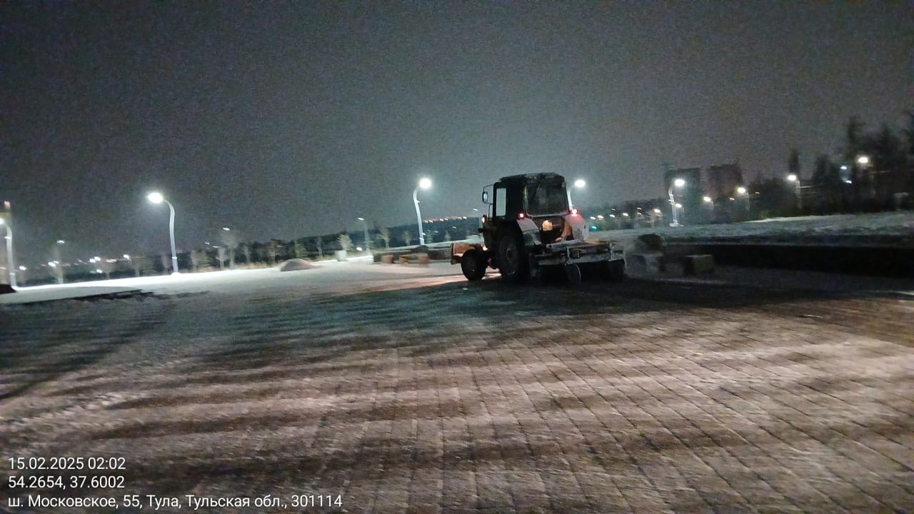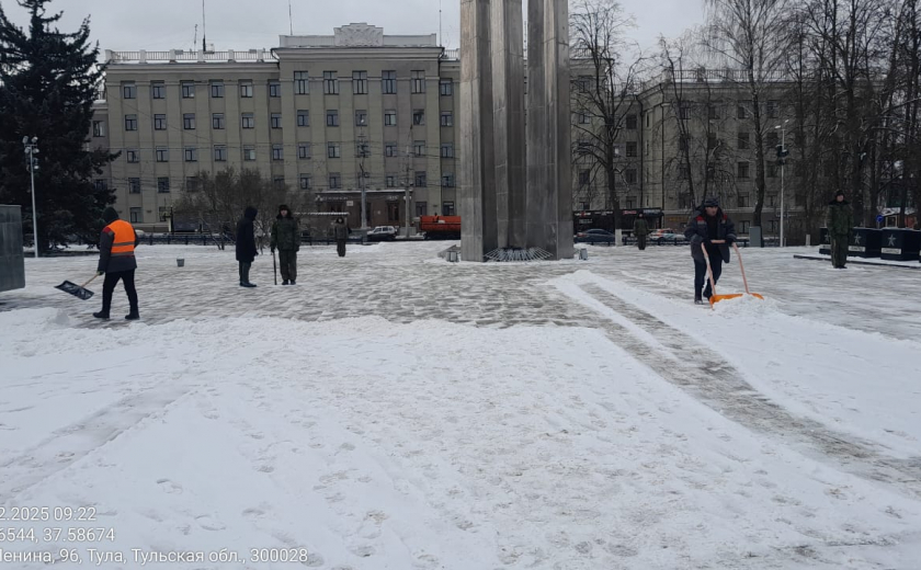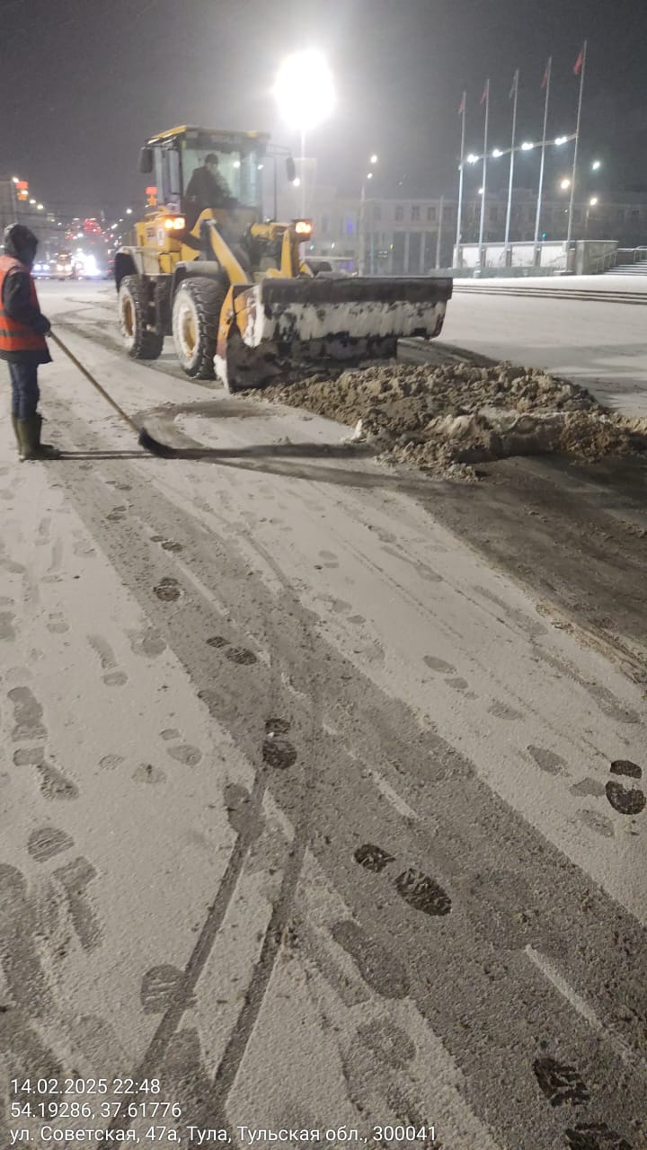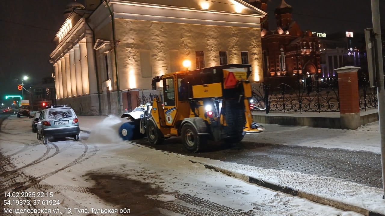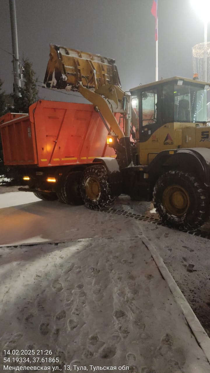 С площади Ленина вывозился снег. Днем работы продолжились. Уборка ведется как в центре Тулы, так и в отдаленных населенных пунктах.