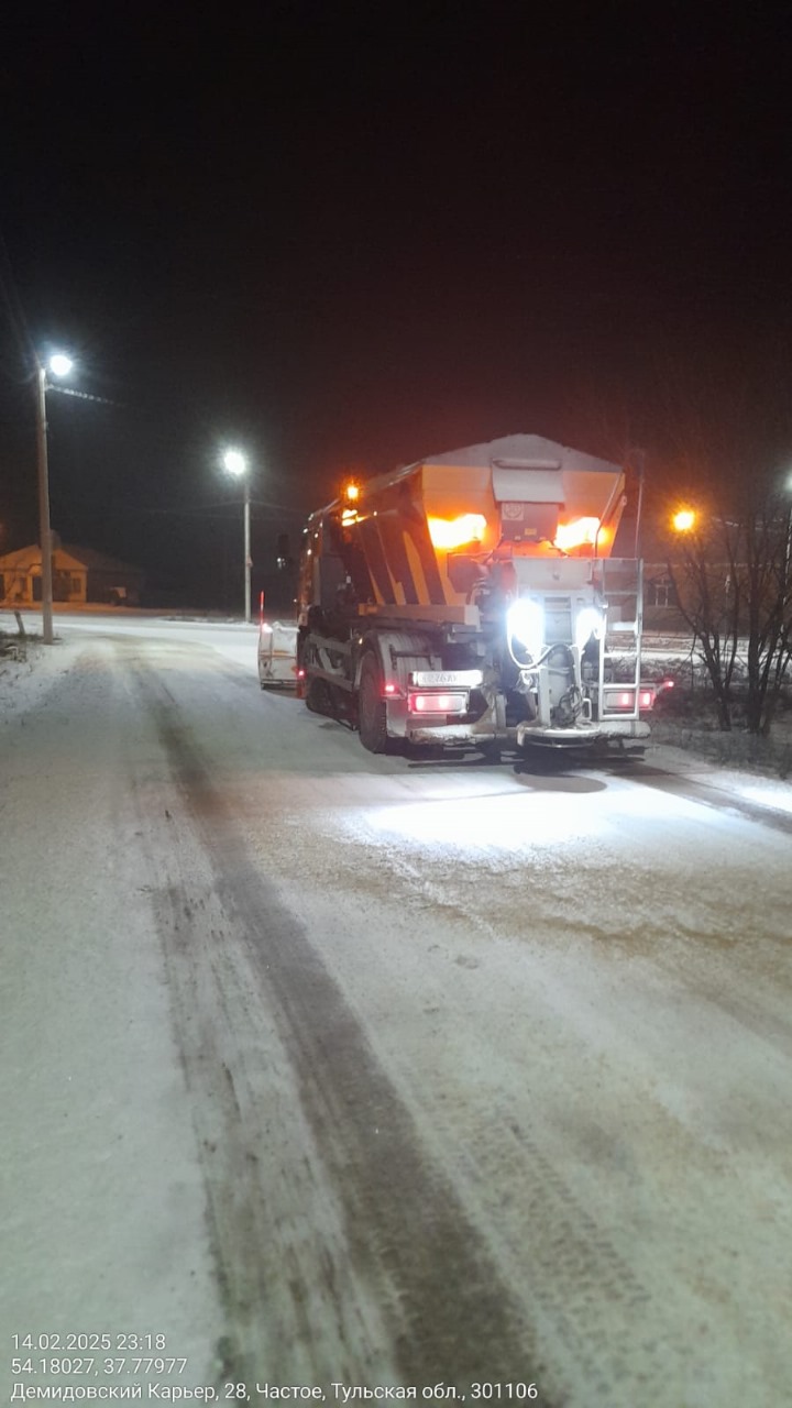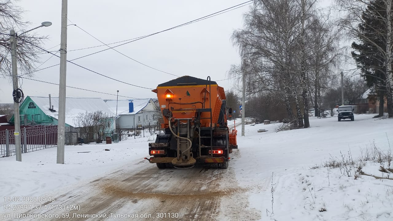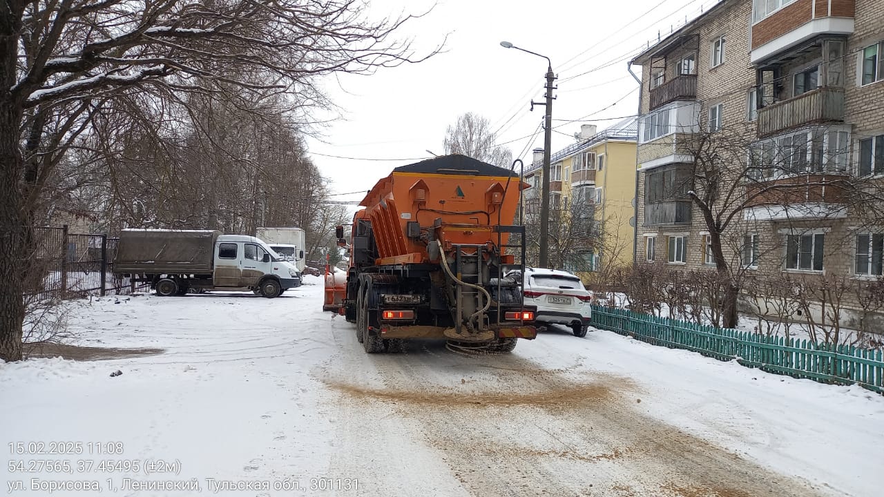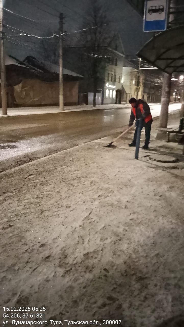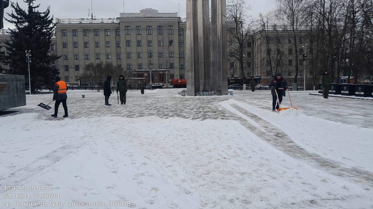 С площади Ленина вывозился снег. Днем работы продолжились. Уборка ведется как в центре Тулы, так и в отдаленных населенных пунктах.