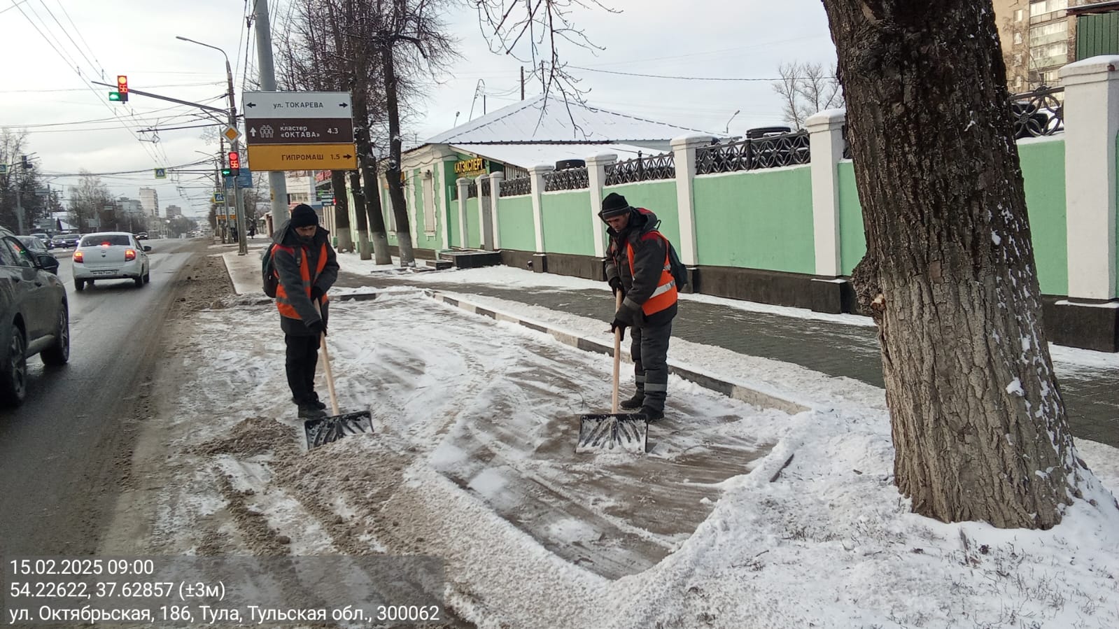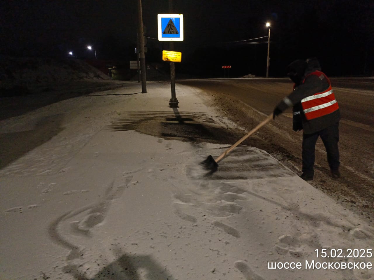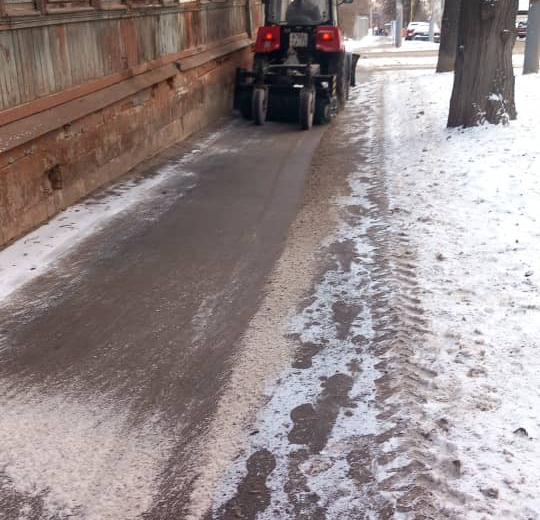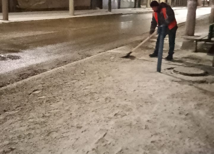 При помощи КДМ проводилась обработка противогололедными материалами и подметание объектов улично-дорожной сети. Кроме этого, выполнялась механизированная очистка пешеходных тротуаров, остановок общественного транспорта и скверов. Вручную убирались автомобильные парковки и пешеходные переходы.