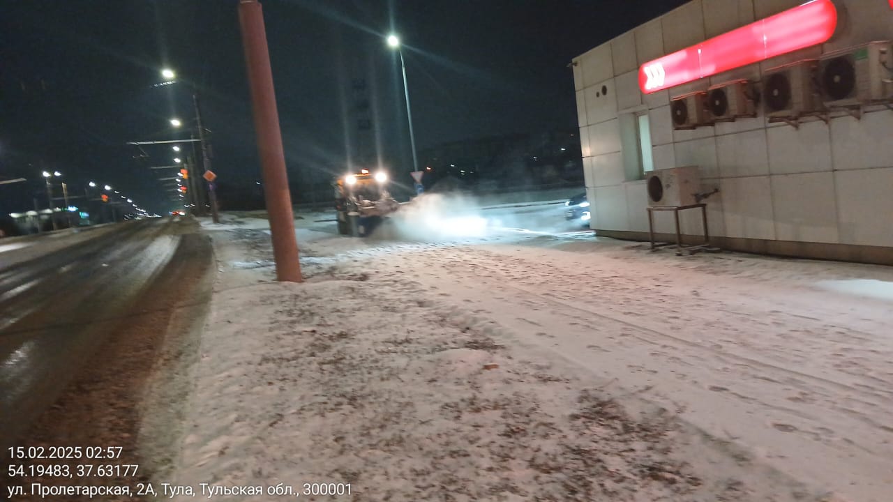 Специалисты ООО «САХ» после снегопада продолжили убирать улицы и общественные пространства Тулы от снега и наледи. В работах были задействованы свыше 100 единиц техники.