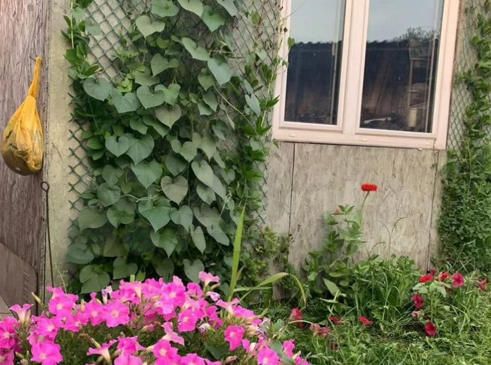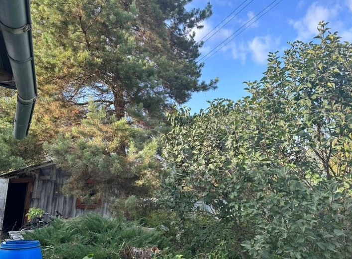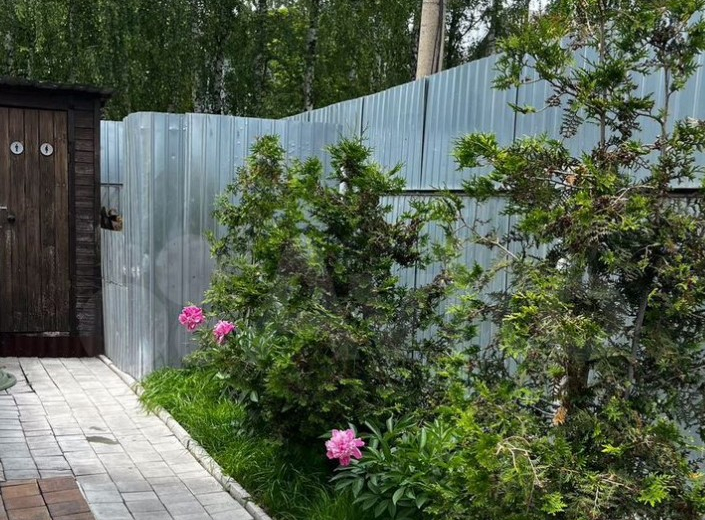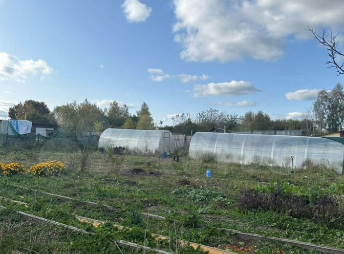 На участке высажены яблони, груши, сливы, виноград и лимонник. Также предусмотрена территория для пасеки. Есть летний душ, подвал, гараж и три сарая.