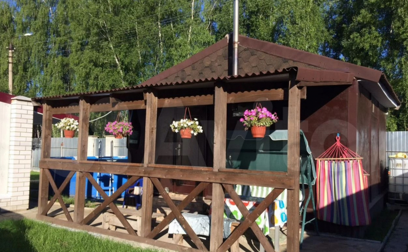 На самом участке высажены плодово-ягодные деревья и кустарники. Есть двухэтажная баня и хозпостройка с теплицей и местом для содержания поросят, кроликов и домашней птицы внутри.