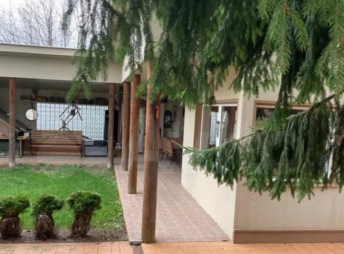 На самом участке оборудована мангальная зона, установлены бассейн и баня с верандой, гараж, вольер для собак, курятник, сарай и уличный туалет. Все коммуникации проведены.