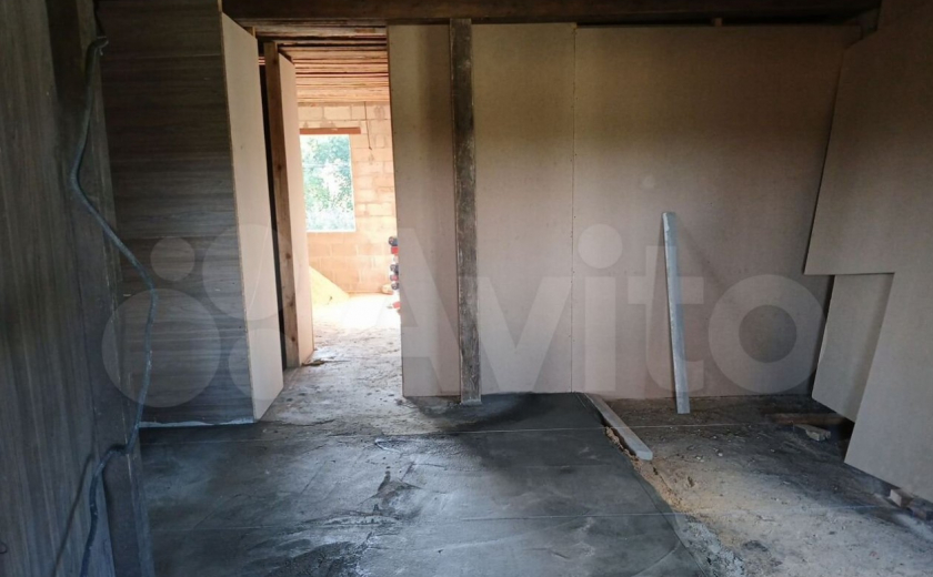 Дом расположен в деревне Русятино Заокского района. Его площадь составляет 705 кв. м. Внутри находятся девять спален, два санузла, кухня, гостиная и две комнаты свободного назначения. Внутренней отделки нет.