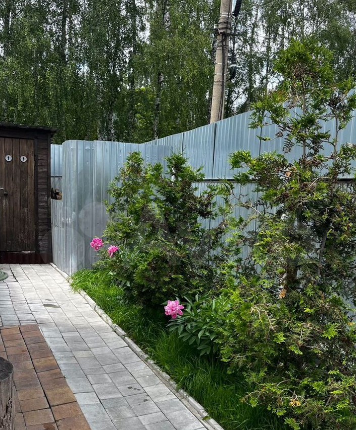 На самом участке высажены плодово-ягодные деревья и кустарники. Есть двухэтажная баня и хозпостройка с теплицей и местом для содержания поросят, кроликов и домашней птицы внутри.