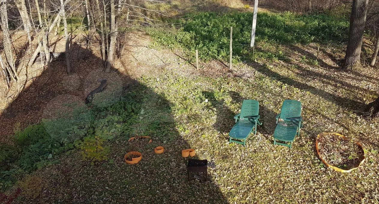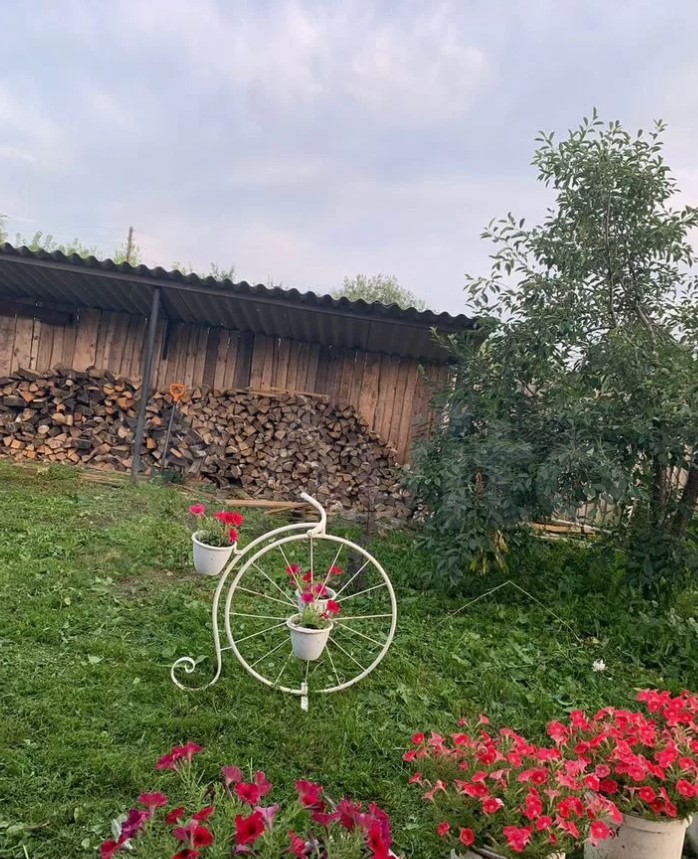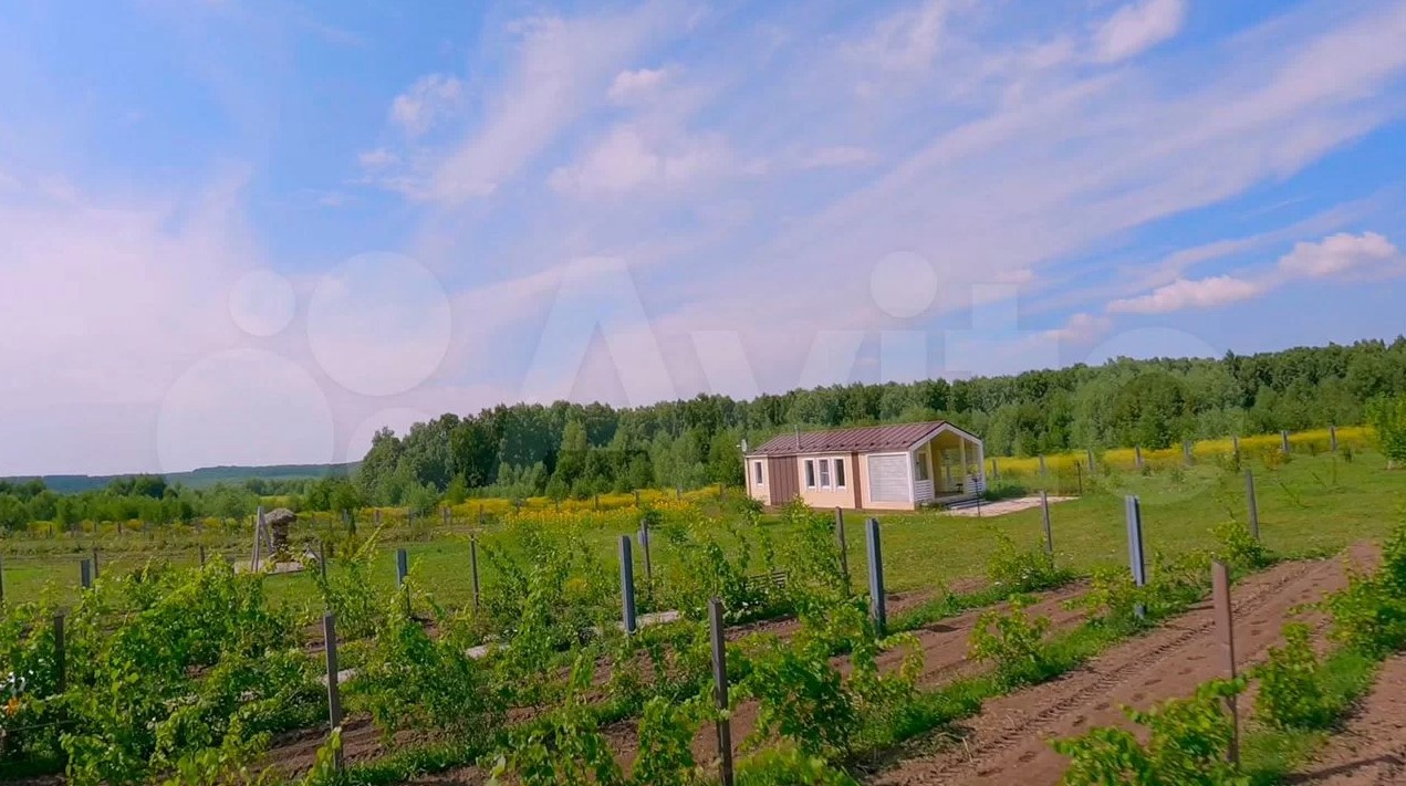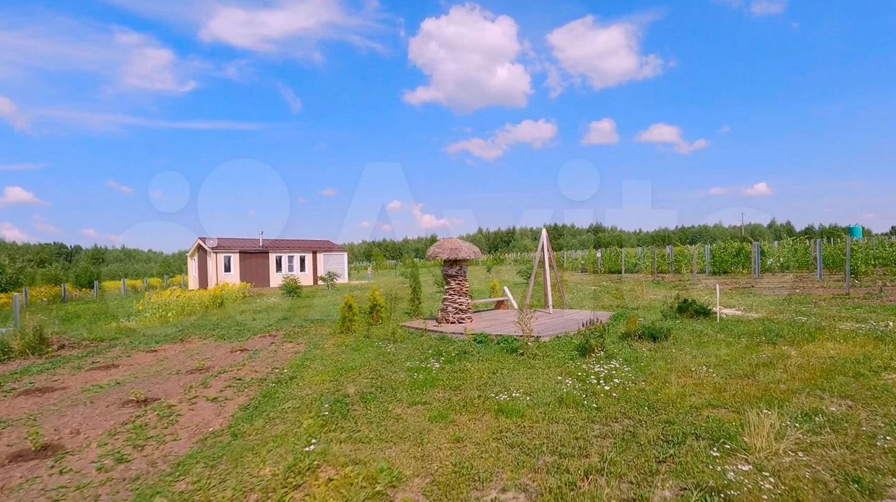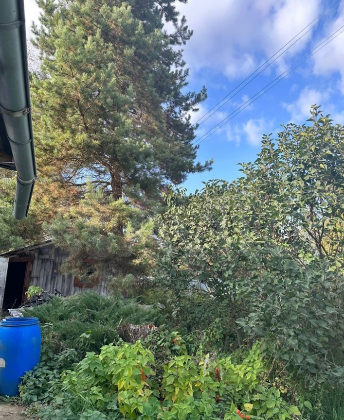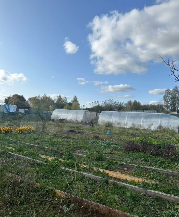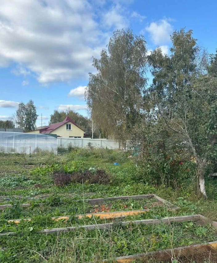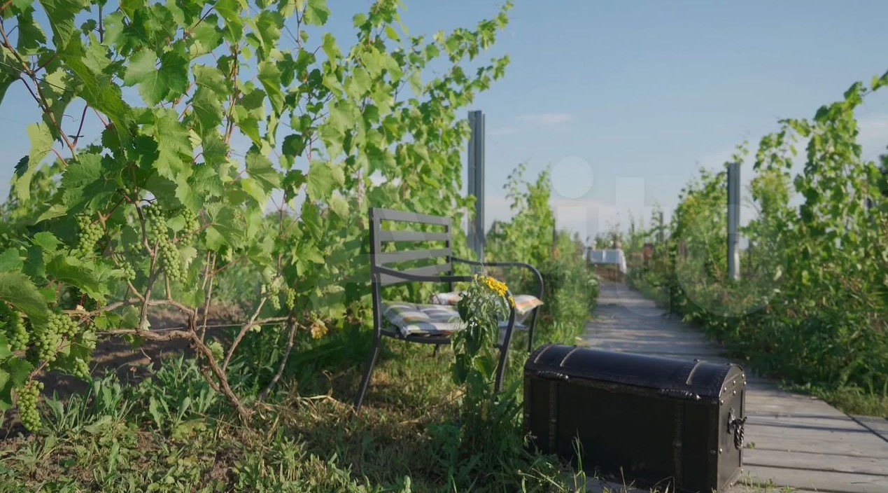 На участке высажены яблони, груши, сливы, виноград и лимонник. Также предусмотрена территория для пасеки. Есть летний душ, подвал, гараж и три сарая.