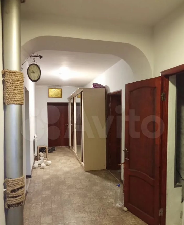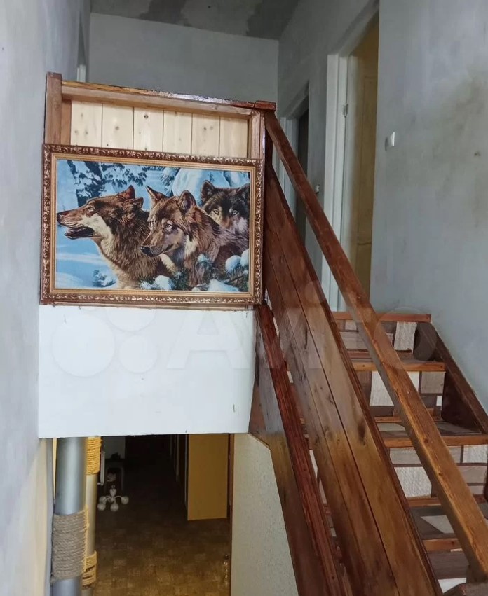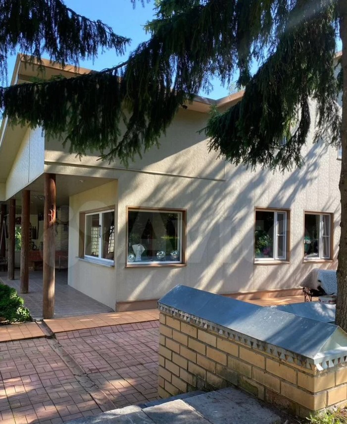 Дом расположен в деревне Русятино Заокского района. Его площадь составляет 705 кв. м. Внутри находятся девять спален, два санузла, кухня, гостиная и две комнаты свободного назначения. Внутренней отделки нет.
