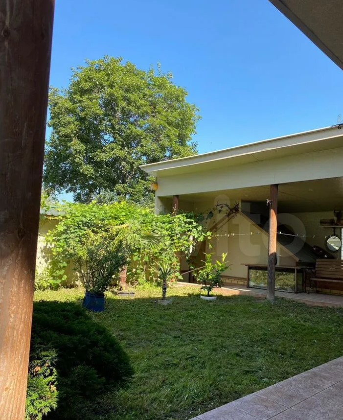 На территории есть гараж, беседка, спортзал. Кроме этого, высажены 11 сортов винограда, вишни, черешни и яблоня. Оборудована система видеонаблюдения. Стоимость дома составляет 13,7 млн рублей.