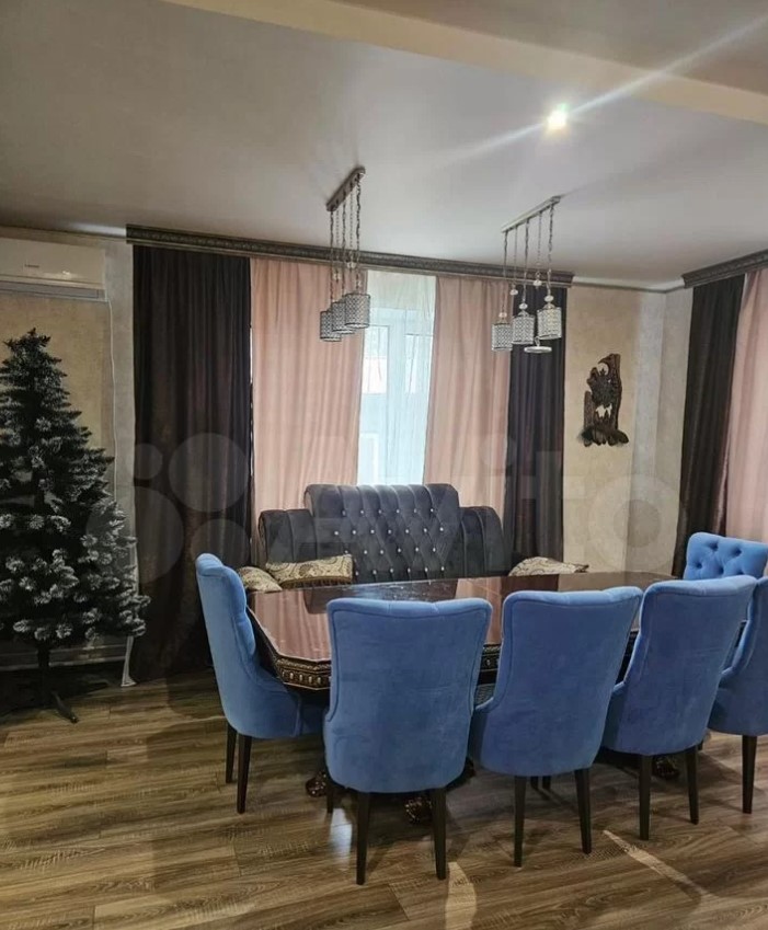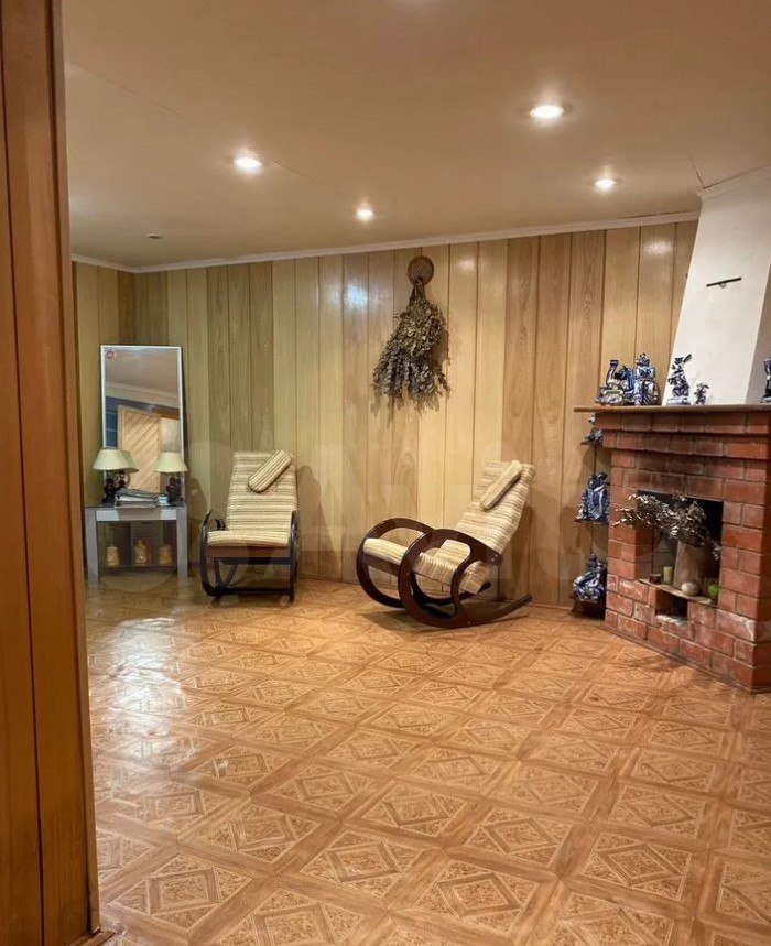 Дом площадью 240 кв. м находится в деревне Хомяковка Киреевского района. Внутри — девять спален и три санузла, кухня, гостиная, подвал.