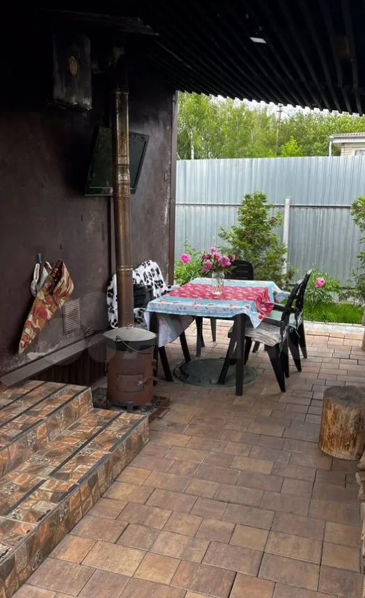 Дом вместе с фермой продается в деревне Каменке Кимовского района. Его площадь составляет 120 кв. м. На территории находятся основной дом, сарай с погребом, дровник, колодец, теплицы, бытовка, хозпостройки и каркасный домик без отделки. Высажены яблони, малина, смородина, вишня, ежевика и клубника.