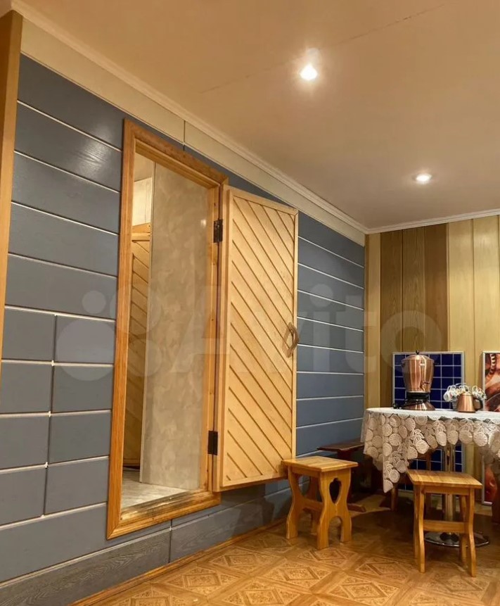 Дом площадью 240 кв. м расположен в селе Протасово Дубенского района. На первом этаже находятся гостиная, кухня, санузел и кладовая. Выше — четыре комнаты, санузел, прачечная и гардеробная. Есть также подвал с отапливаемой сауной, комнатой для отдыха с камином и санузлом.