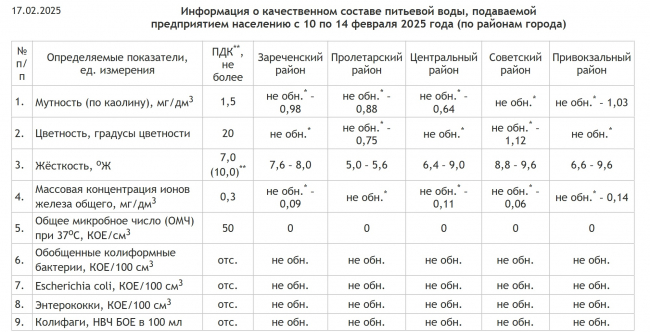 «Тулагорводоканал» обновил показатели питьевой воды, подаваемой жителям. На этот раз проанализирован период с 10 по 14 февраля. Показатели по каждому району областного центра представлены в таблице.