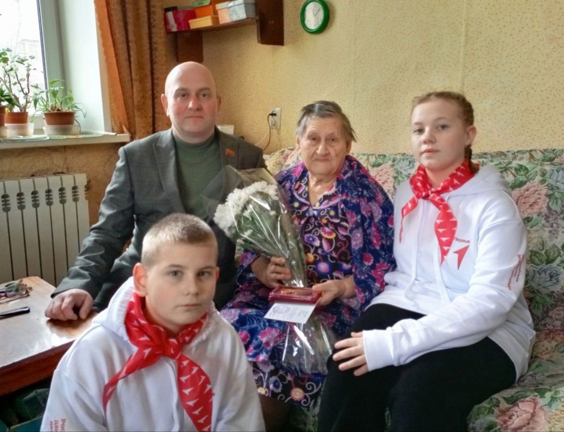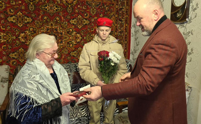 Заместитель председателя Собрания депутатов Николай Швырков также поздравил ветеранов вместе с юнармейцами МБОУ СОШ № 9. Анна Сергеевна Фролова, Михаил Петрович Огурчиков и Татьяна Васильевна Воробьева были награждены медалями за самоотверженную работу, которую они проделали в годы войны. Это были люди, чье детство было связано с трудом: Анна Сергеевна копала противотанковые рвы, Михаил Петрович работал на заводе, а Татьяна Васильевна трудилась в колхозе.