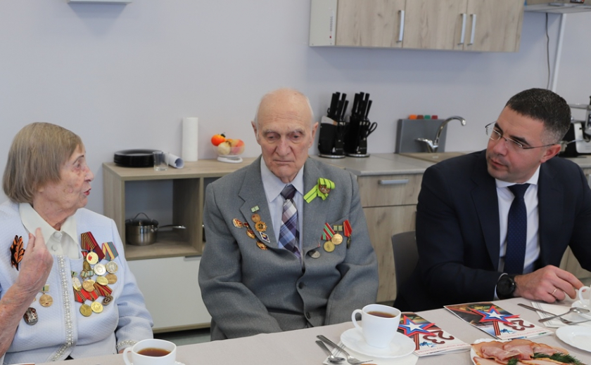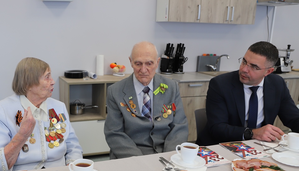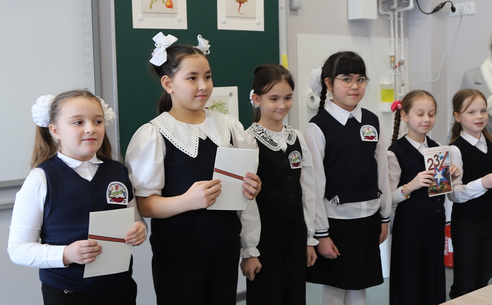Мэр поблагодарил ветеранов за встречу, поздравил с наступающим Днем защитника Отечества и пожелал им здоровья. Школьники вручили гостям открытки.