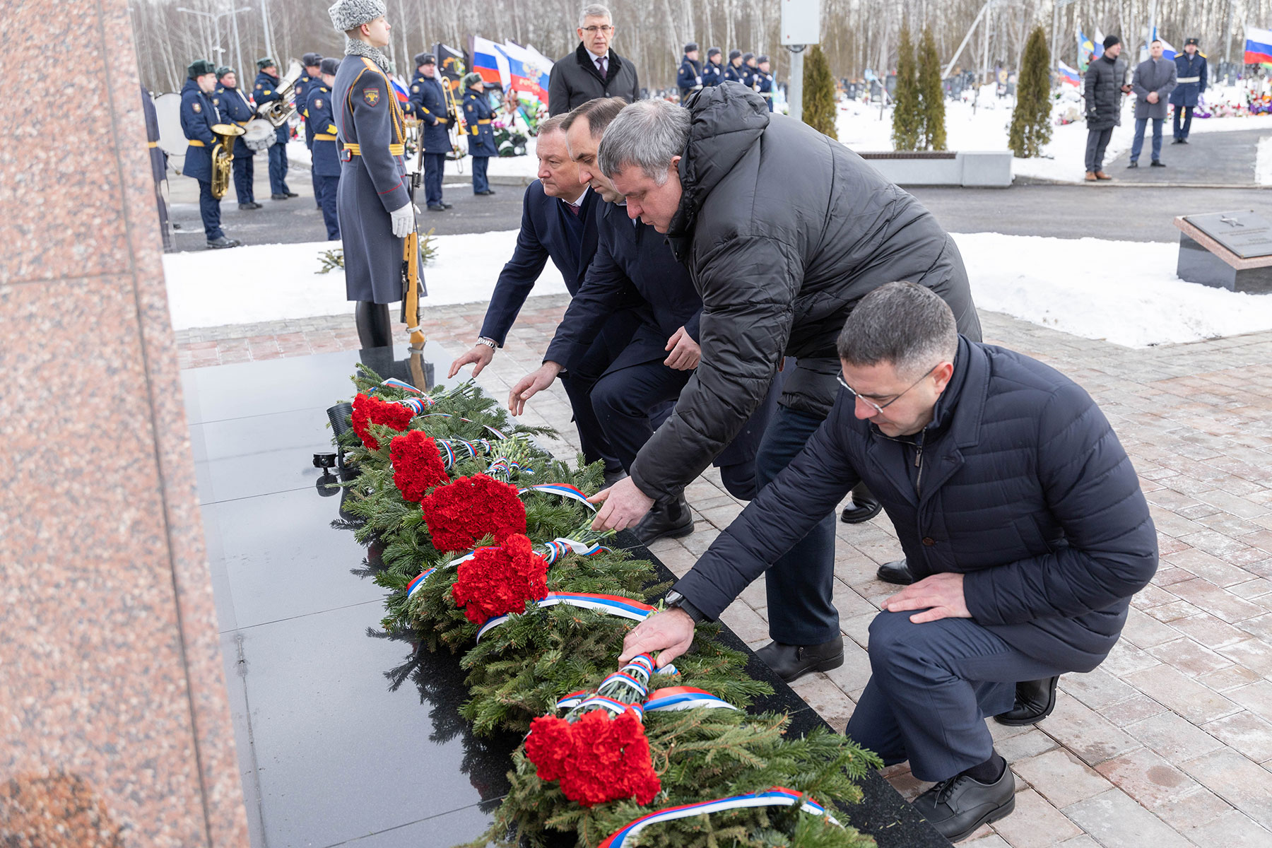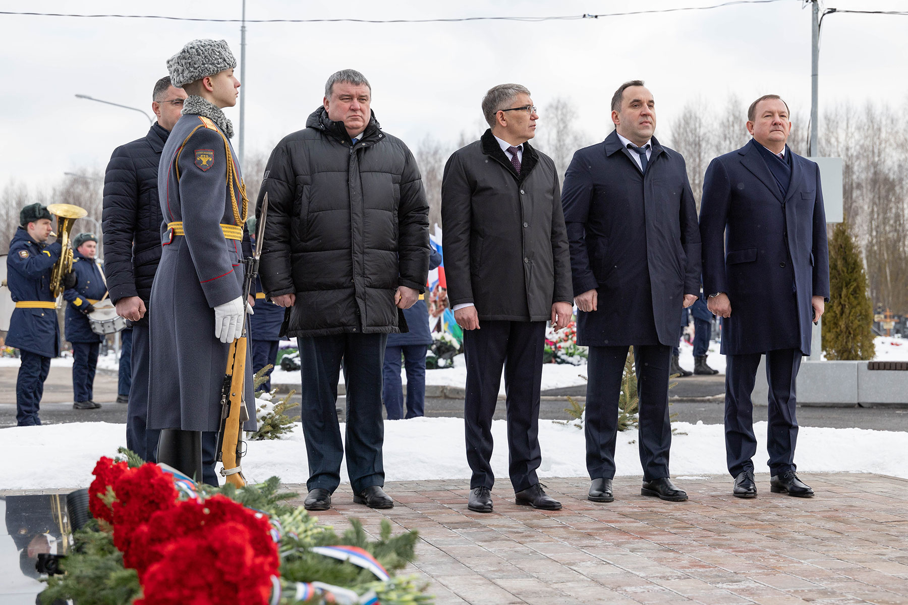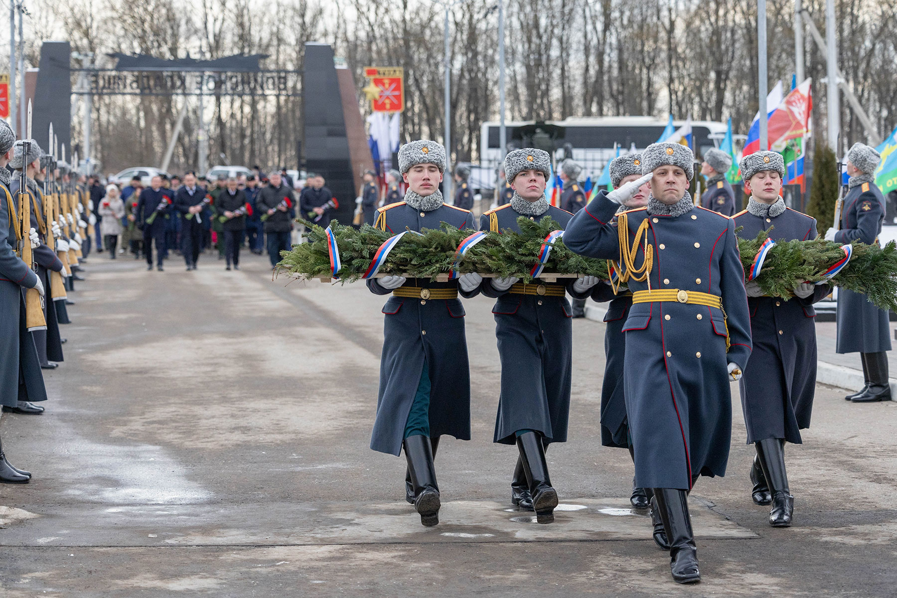 В мероприятиях также участвовали ветераны боевых действий, бойцы роты почетного караула 154-го отдельного Преображенского полка, суворовцы, кадеты, юнармейцы и близкие погибших военнослужащих. Память павших присутствующие почтили минутой молчания.
