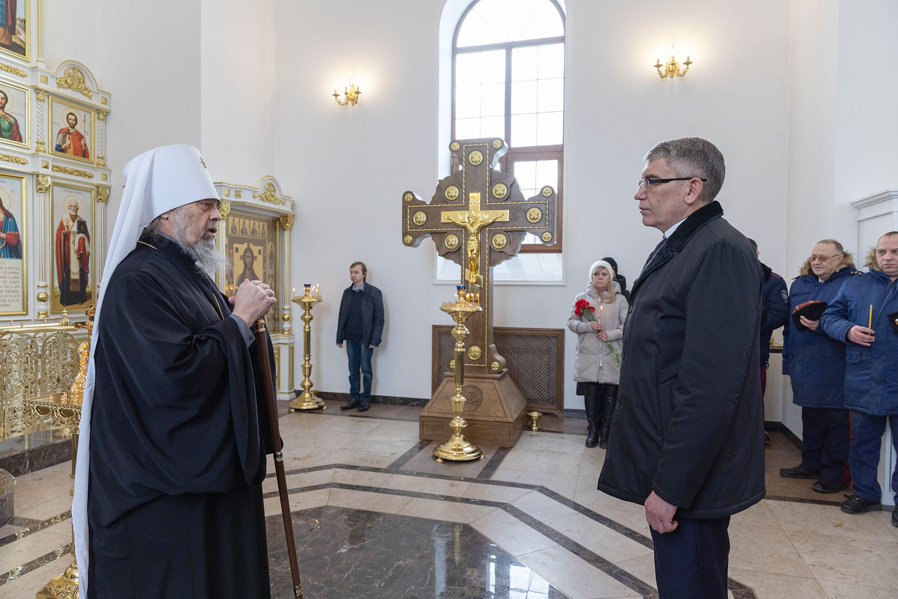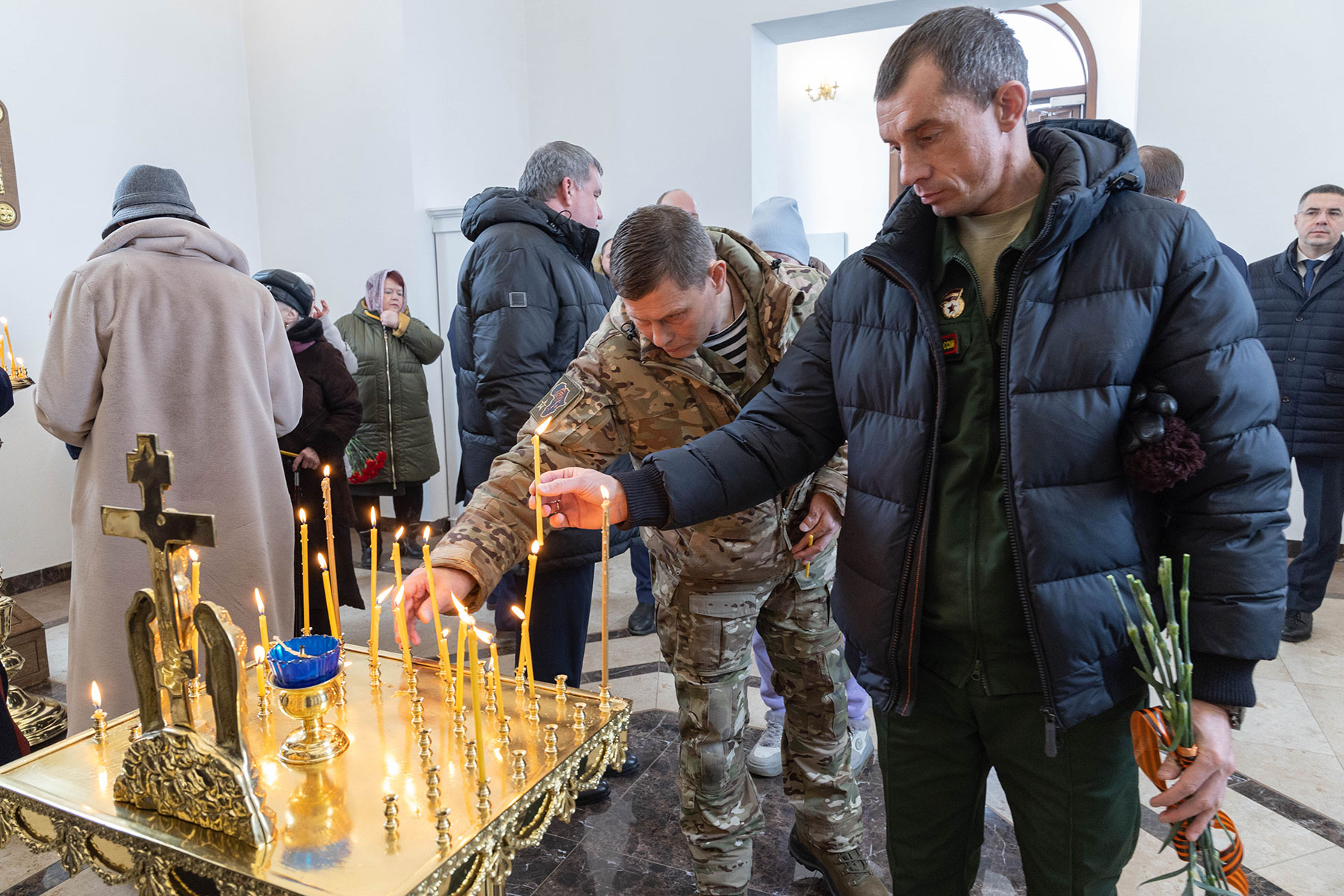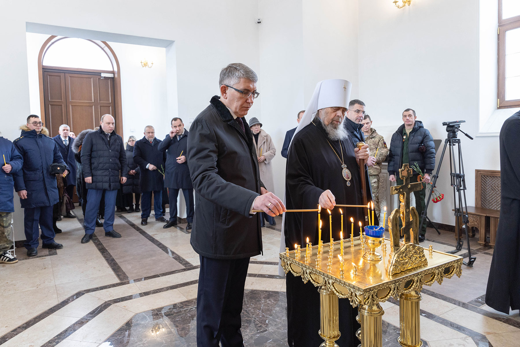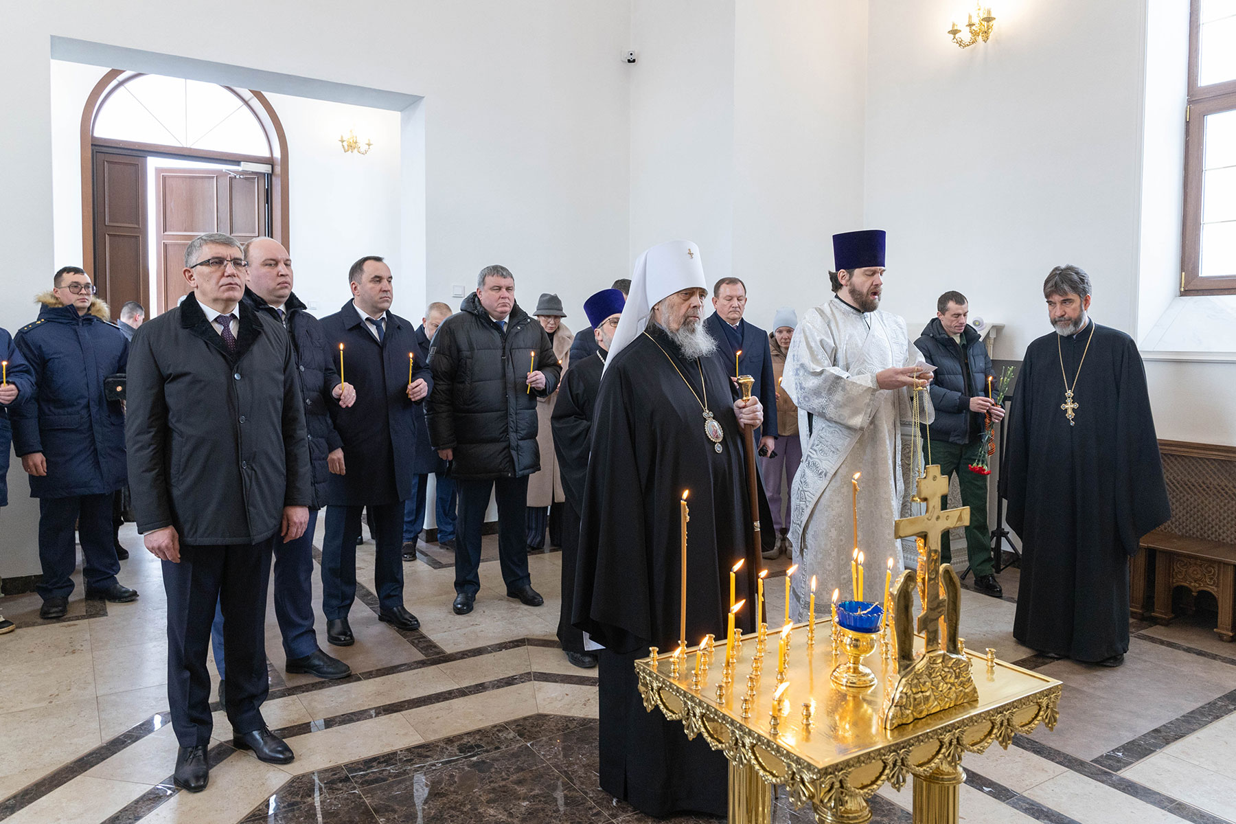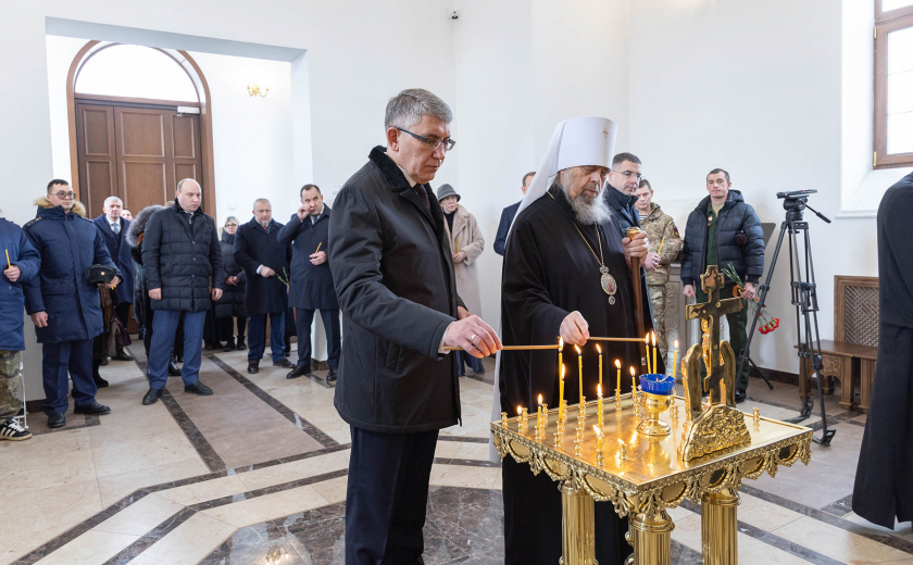 Кроме этого, губернатор посетил литию по павшим воинам в храме иконы Божией Матери «Утоли моя печали» на территории городского кладбища № 5.