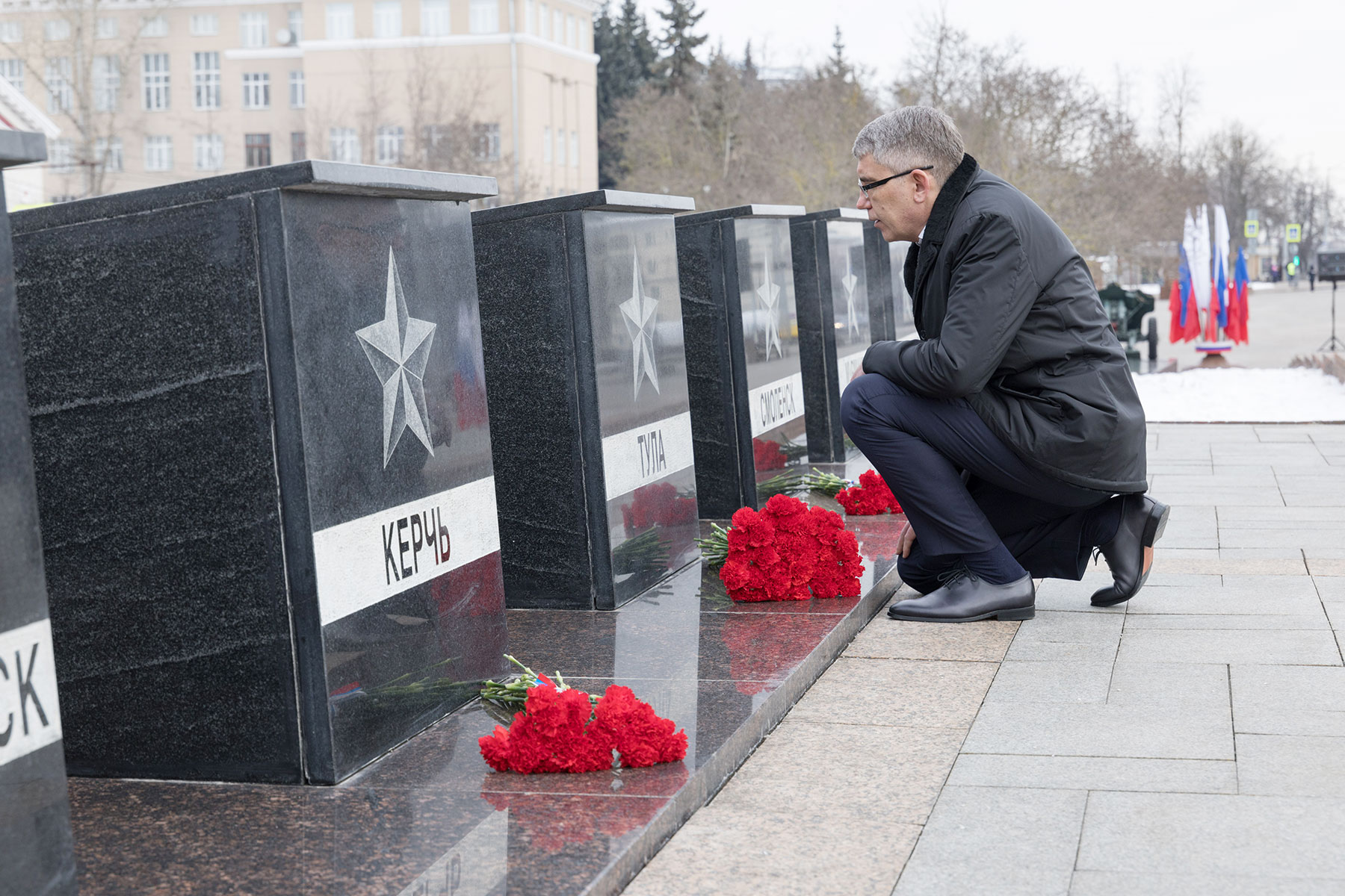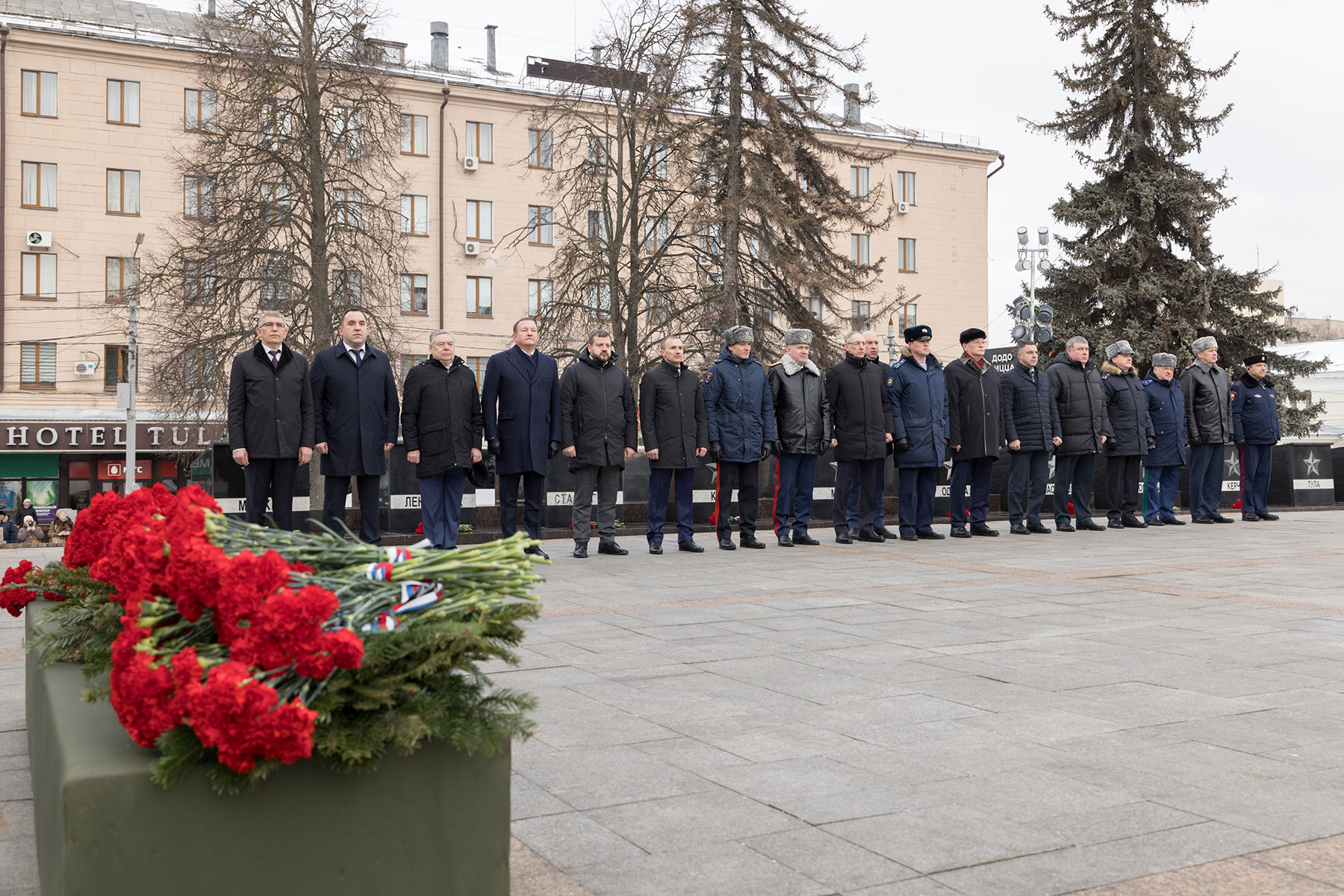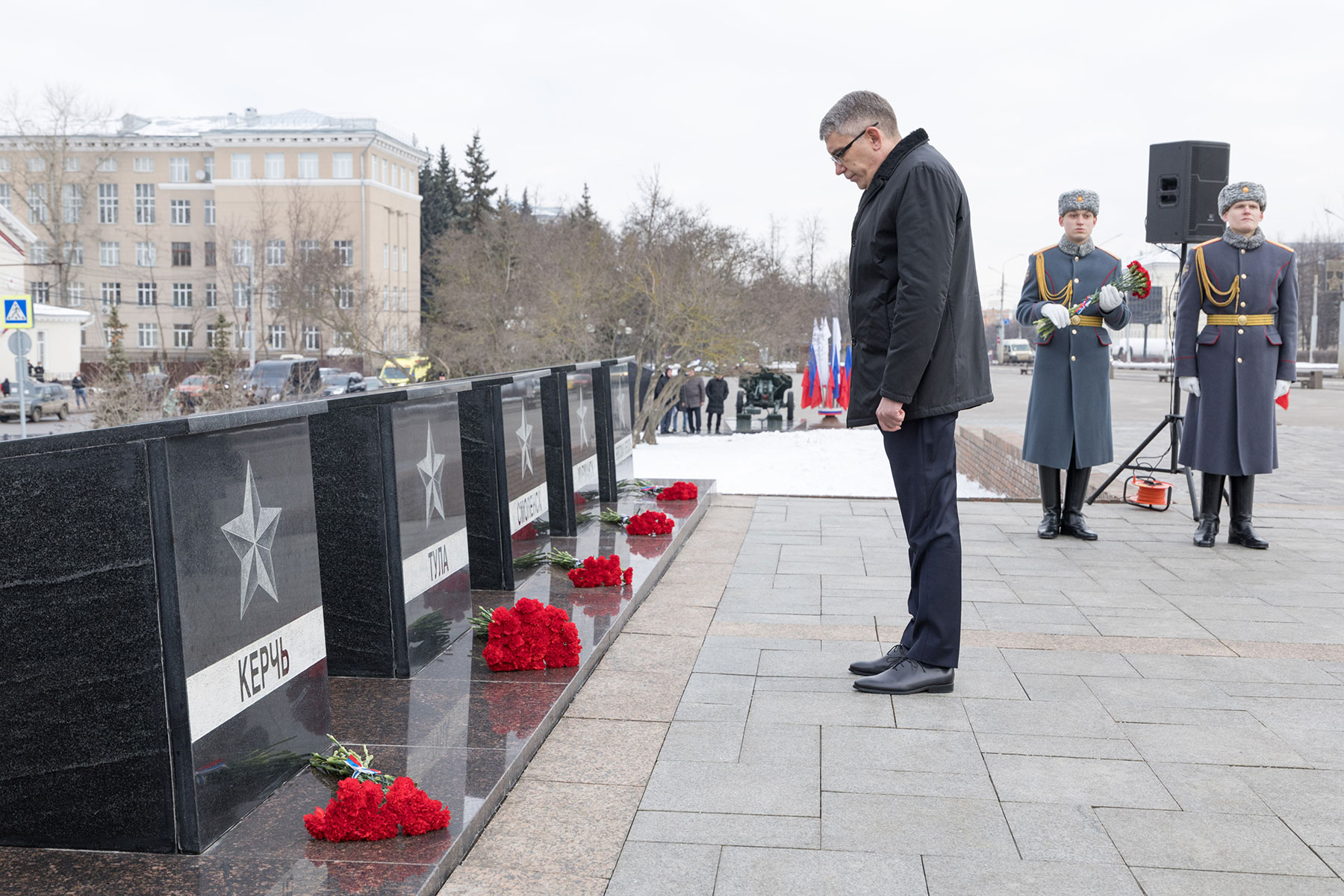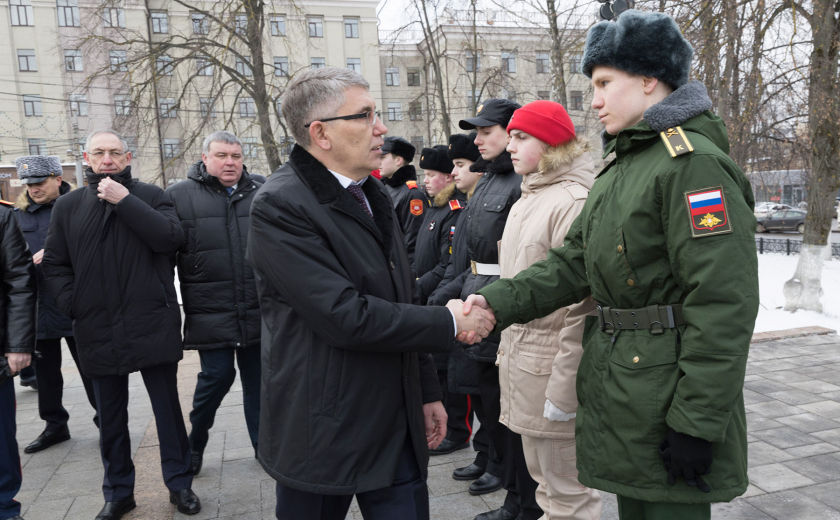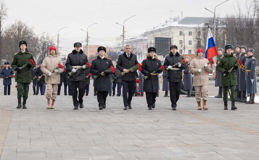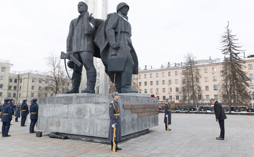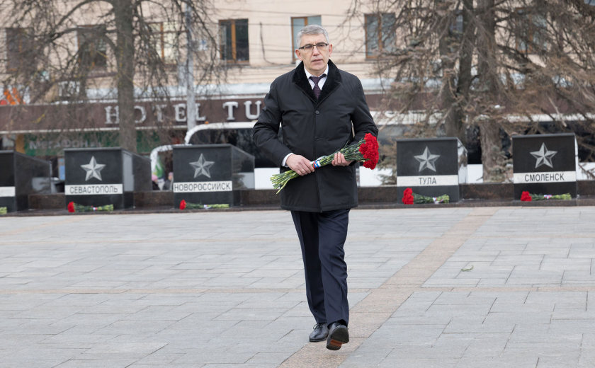 В преддверии Дня защитника Отечества губернатор Тульской области Дмитрий Миляев возложил цветы к Вечному огню на площади Победы и мемориалу «Защитникам Родины».