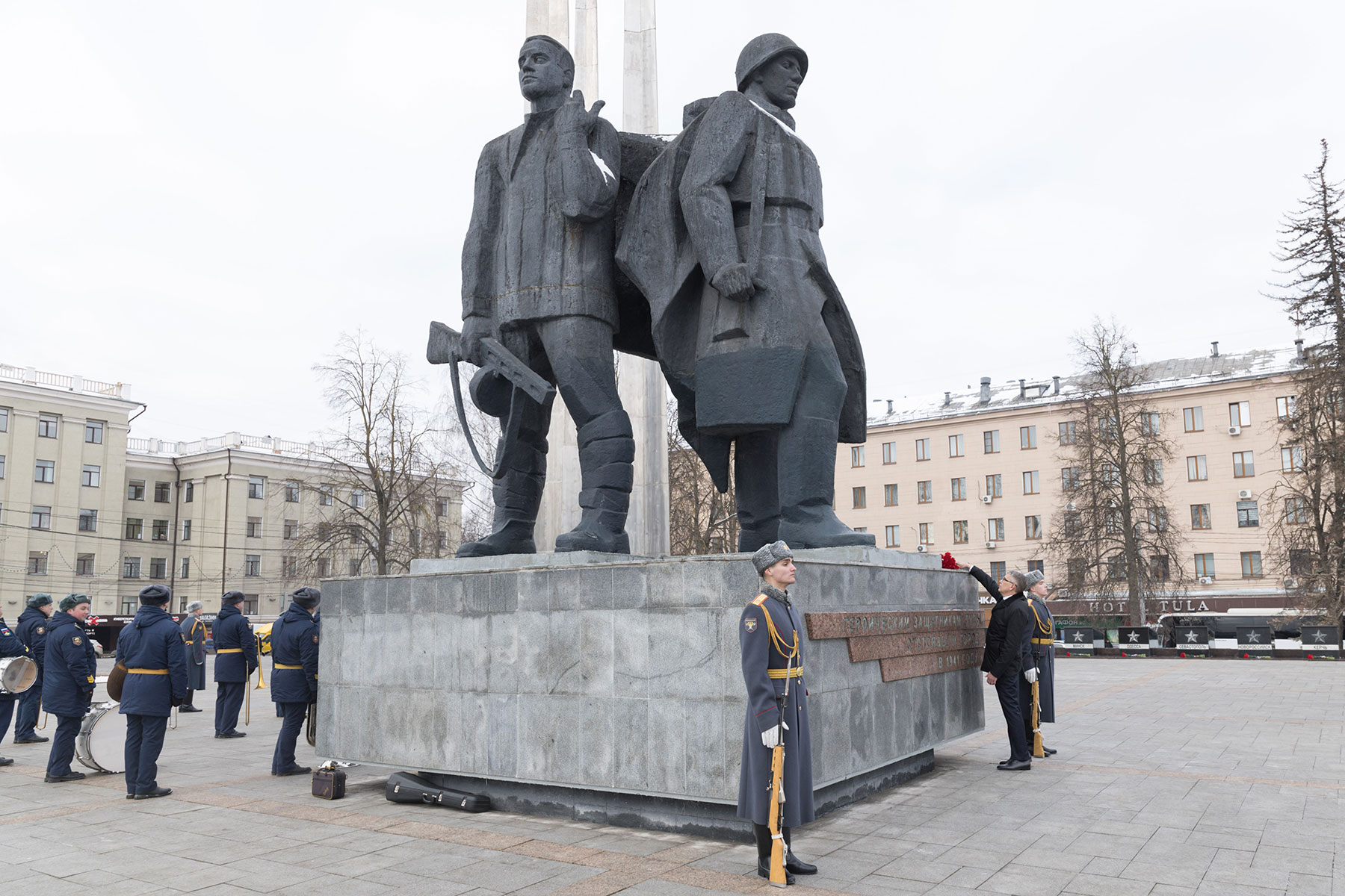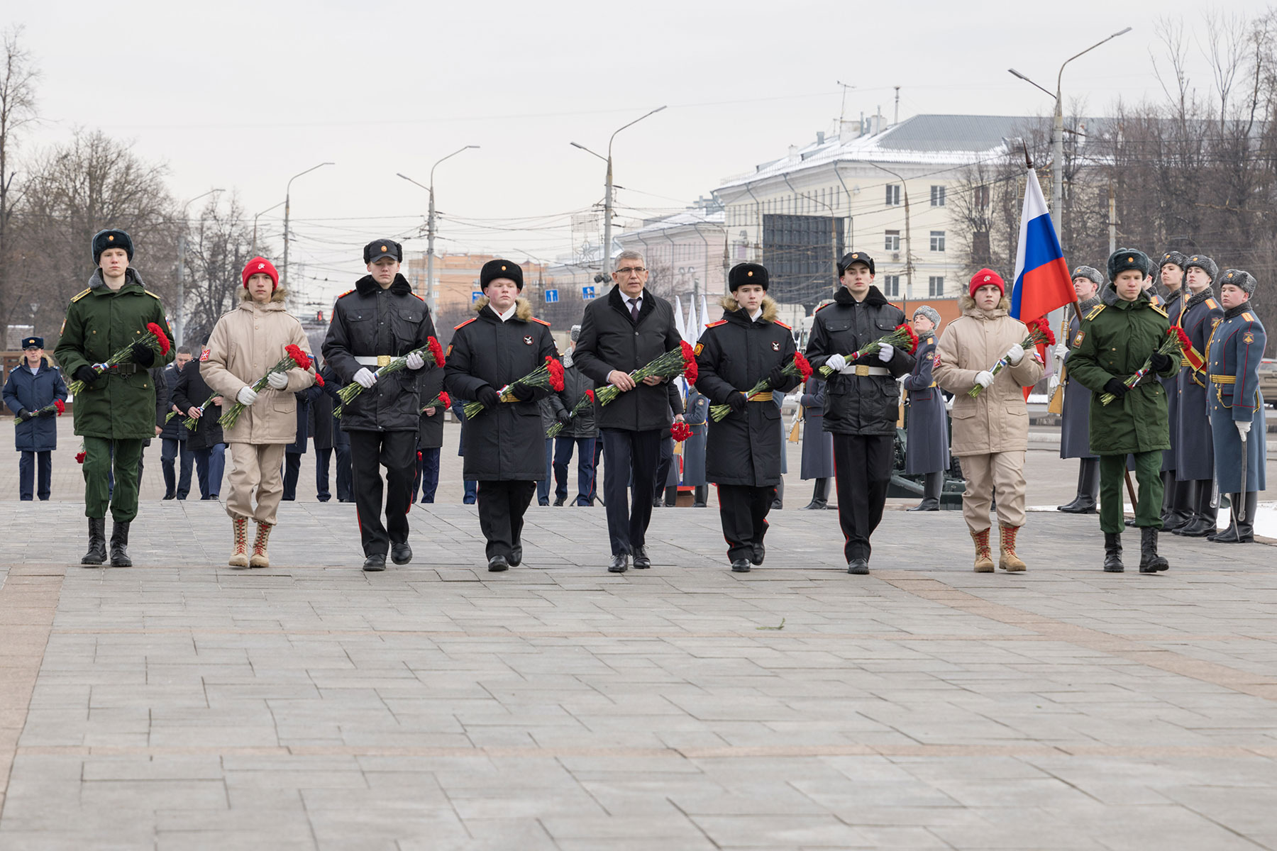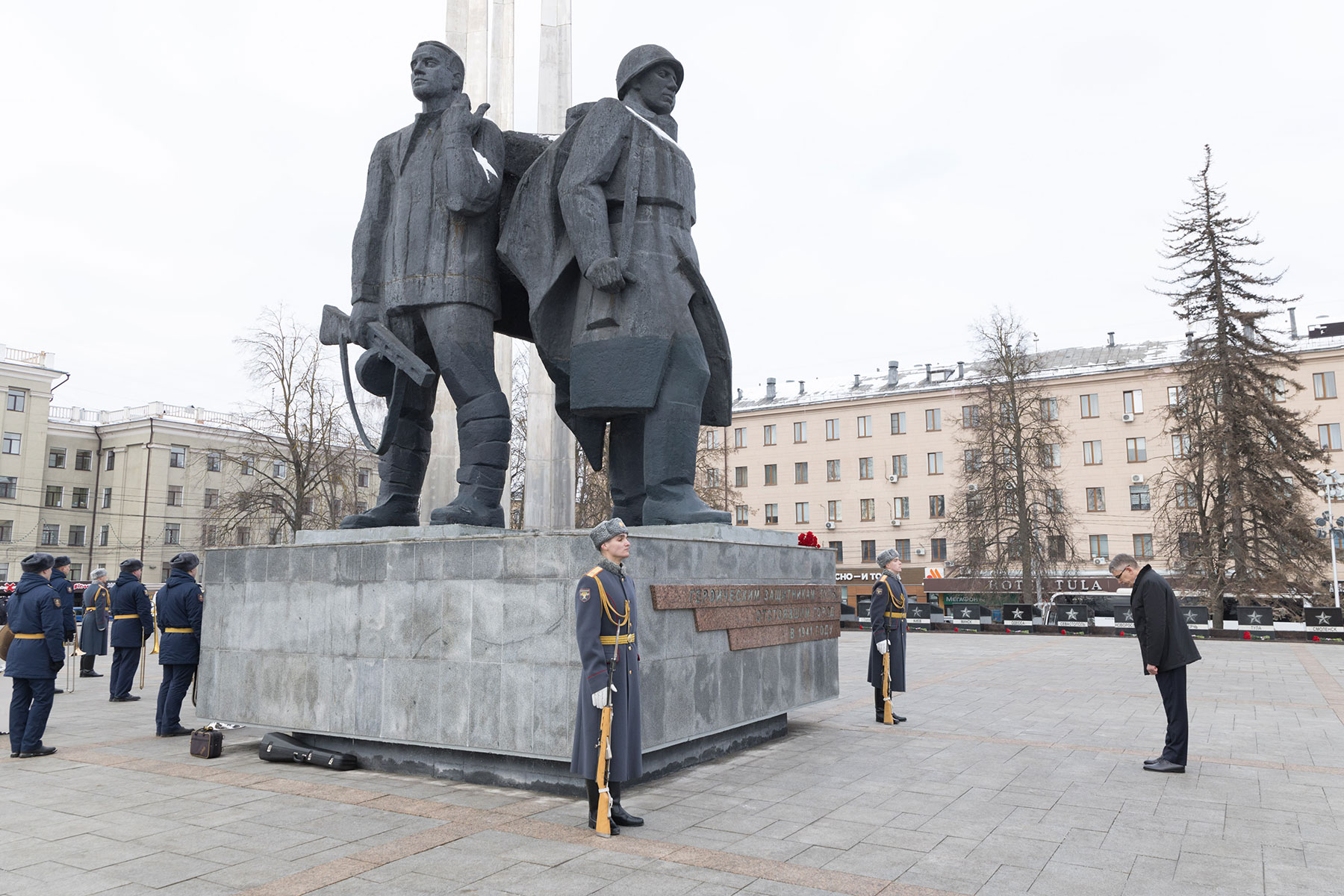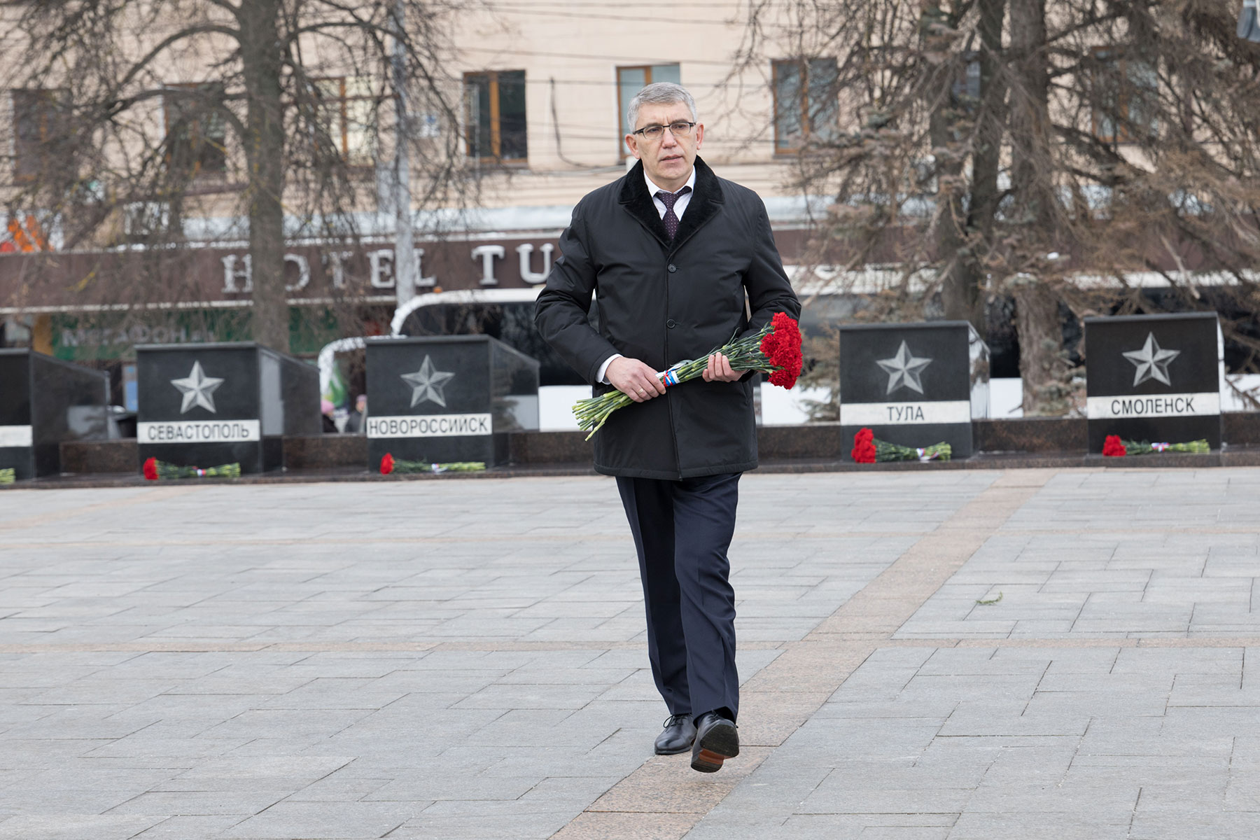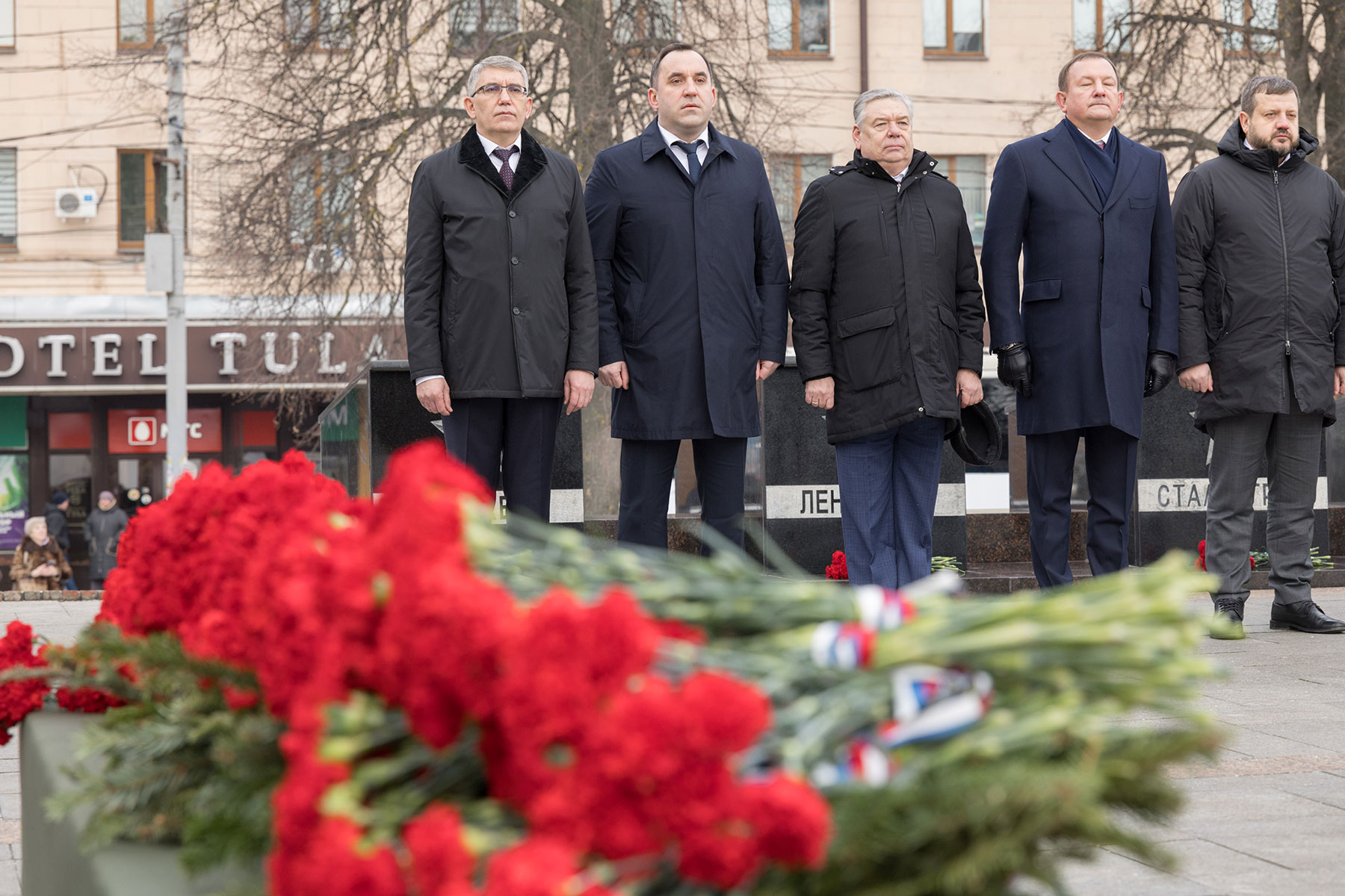 В преддверии Дня защитника Отечества губернатор Тульской области Дмитрий Миляев возложил цветы к Вечному огню на площади Победы и мемориалу «Защитникам Родины».