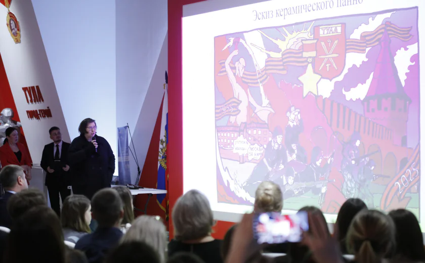 За основу панно возьмут две работы тульских детей, которые стали победителями творческого конкурса «Победа. Память. Будущее». Рисунки присылали ребята от 9 до 17 лет. На церемонии награждения представили эскиз панно. Его размер составит 2,5 на 1,6 метра.