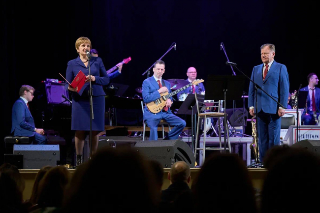 В оружейной столице в концерте приняли участие Московский джазовый оркестр, Наталья и Олег Бутман (клавишные — ударные), а также американские музыканты и актер Виктор Добронравов.