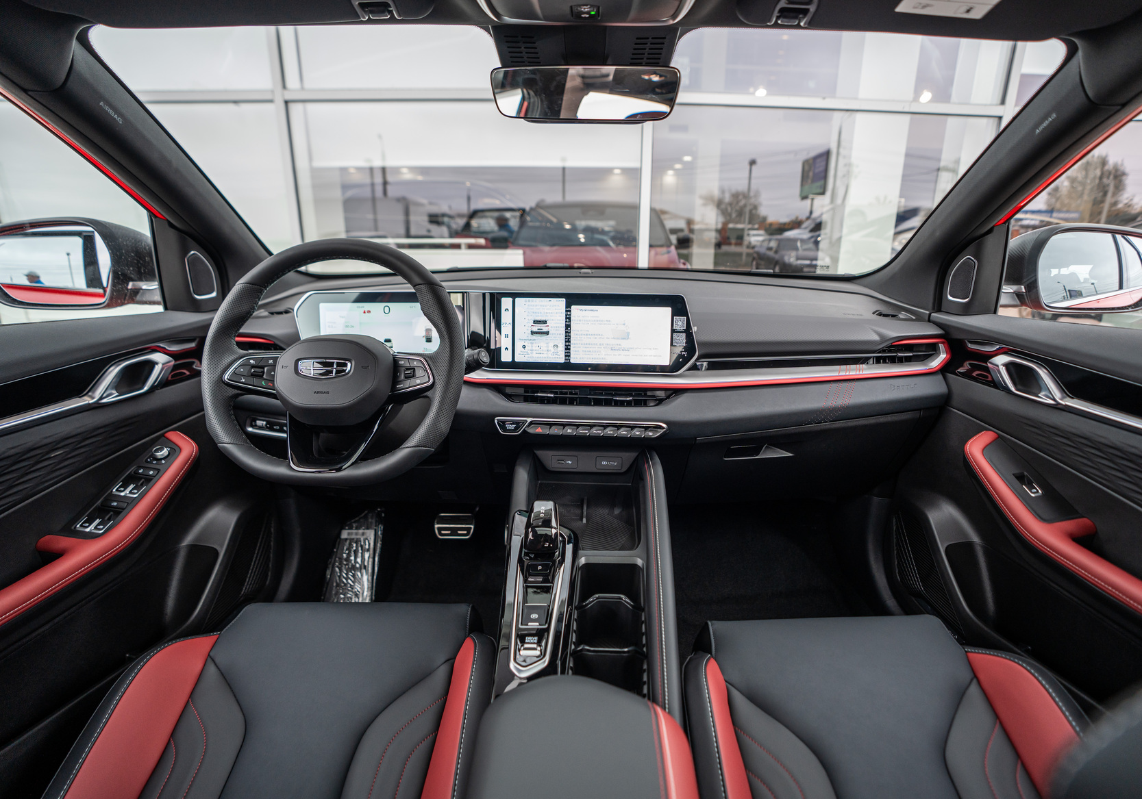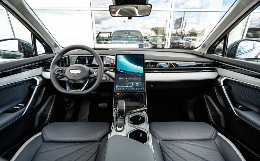 У Coolray есть панорамная крыша, которая создает ощущение простора и света в салоне, автопарковщик, который значительно облегчает парковку, а также атмосферная подсветка. Джойстик селектора коробки передач и множество зарядок для мобильных устройств делают эту модель особенно привлекательной для тех, кто активно использует гаджеты. Что касается эргономики, то в Coolray все на высшем уровне. За выбор режима движения отвечает стильный джойстик, а фон приборной панели можно изменять по желанию водителя.