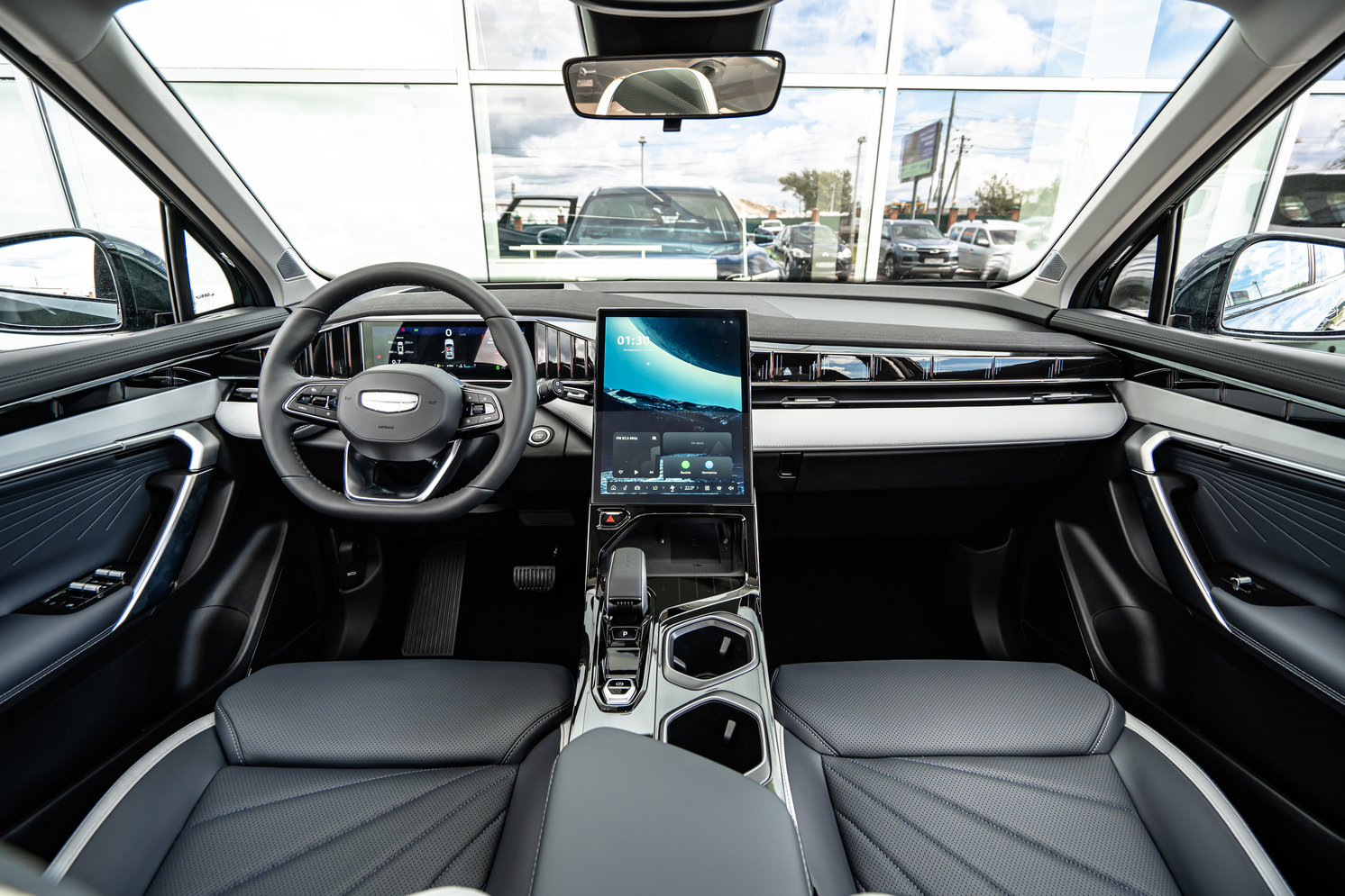 В современном мире, где автомобили всё больше перегружены множеством различных опций. В автомобиле Geely Atlas не так много дизайнерских решений, что, в свою очередь, создает атмосферу простоты и понятности. Тем не менее, говорить о недостатке опций не приходится. Центральное место на приборной панели занимает большой монитор, который выполняет множество функций, начиная от управления климатом и заканчивая мультимедийной системой.