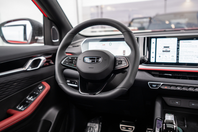Первое, что видишь при взгляде на обновленный Geely Coolray – это яркий дизайн. Агрессивный характер модели здесь не только не стали прятать, но и всячески подчеркнули. Красные суппорты тормозов, сдвоенные патрубки выхлопной системы и антикрыло на двери багажника – тут это не про бутафорию, а про езду. Подчеркивают спортивный нрав кроссовера четкие грани кузова, обновленные бампера, светодиодная оптика и два новых цвета кузова – голубой и золотистый. Таким образом теперь покупателю доступен выбор из девяти расцветок – столько не предлагает ни один конкурент.