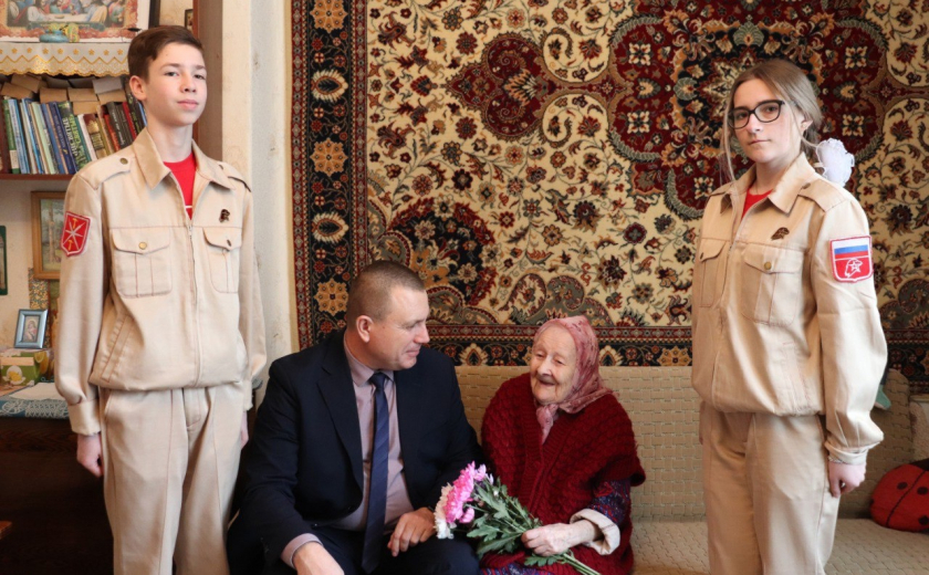 Глава администрации Донского Сергей Кулик посетил труженицу тыла Евгению Демиденко. Он поздравил женщину со 100-летием, передал цветы и подарки.