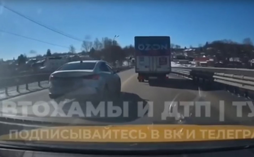 Мужчина на Щекинском шоссе, возможно, сильно спешил, поэтому его не остановил от нарушения ни достаточно оживленный поток машин, ни двойная сплошная. Объехать легковое авто и грузовик он решил по встречной полосе.