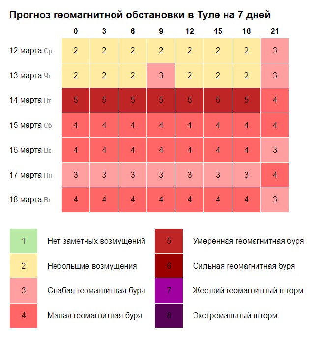 Метеозависимым тулякам стоит приготовиться. На этой неделе их ждет магнитная буря. Пика она достигнет 14 марта. Тогда в Туле ожидается умеренная магнитная буря. Затем ее уровень пойдет на небольшой спад.