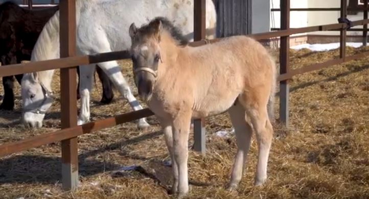 Куполек ведет себя как и все жеребята — любит попрыгать, порезвиться, а иногда даже убегает от матери.