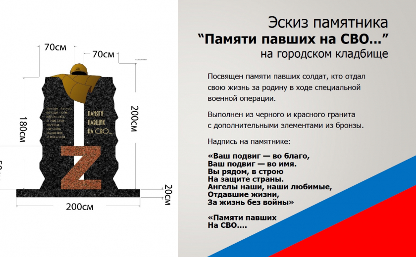 «Первый памятник, выполненный из гранита с бронзовыми элементами, будет установлен на Аллее Славы. На территории мемориала будут предусмотрены скамья и флагшток. Мы приложим все усилия, чтобы завершить его установку и благоустройство территории до 9 мая.