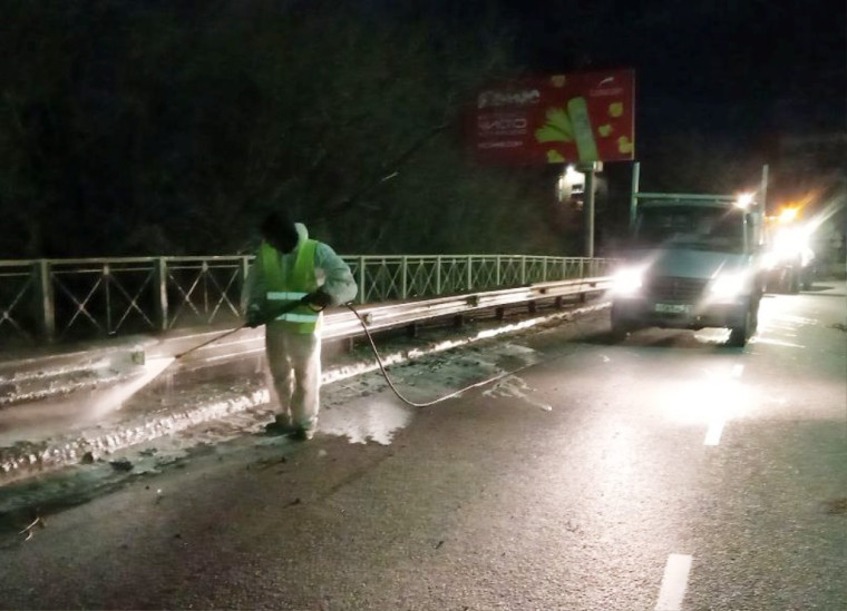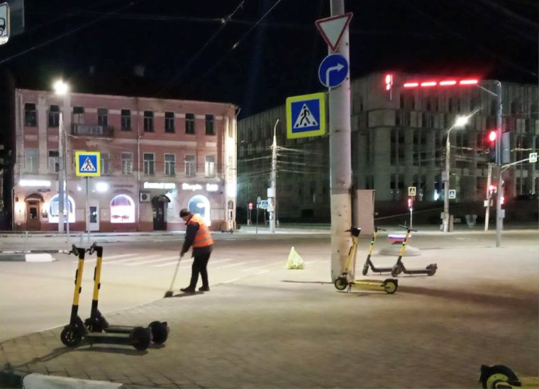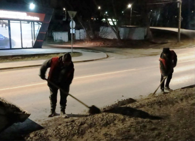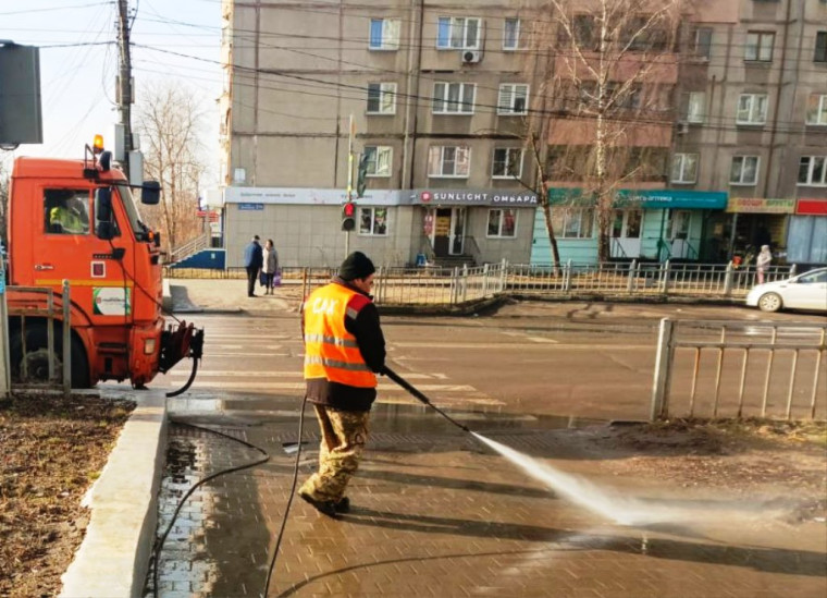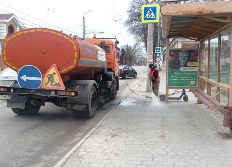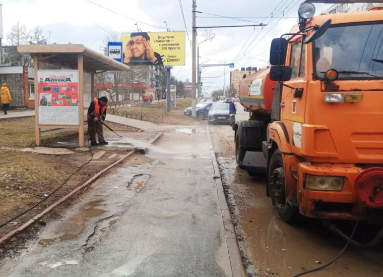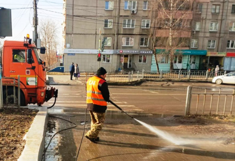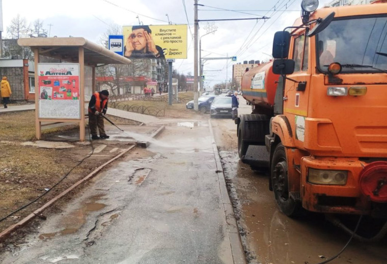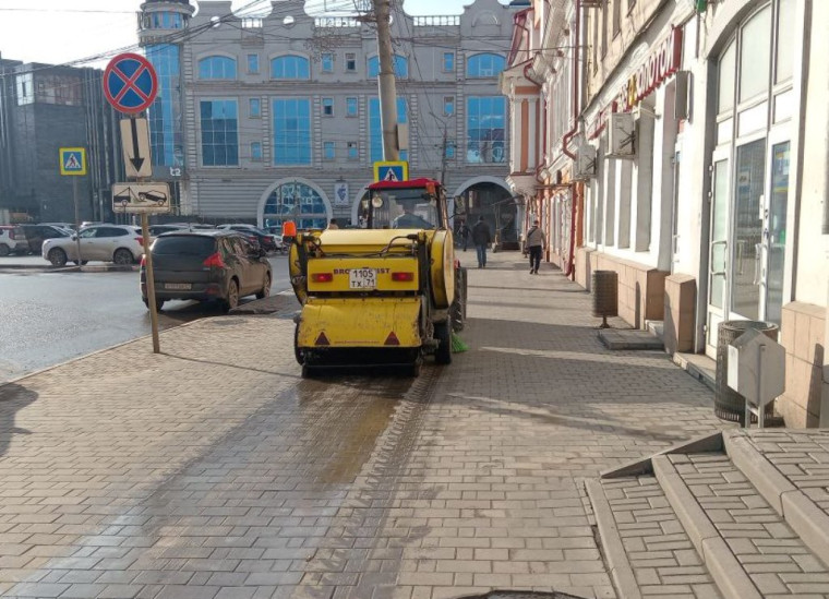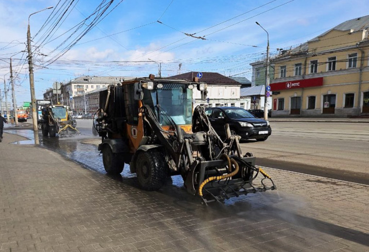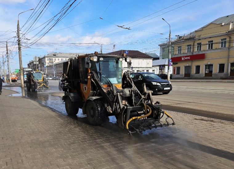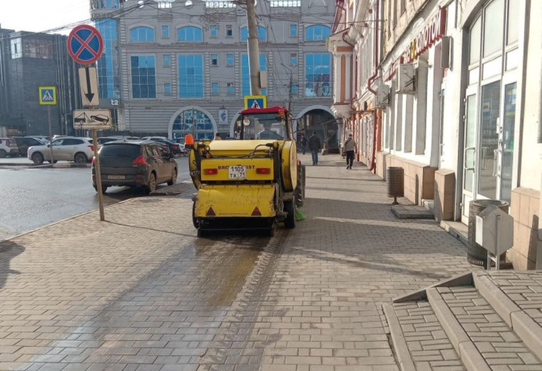 На Рязанской улице мыли барьерное ограждение. На улицах Кирова, Советской, Кутузова, Мосина, Пролетарской, Демонстрации, Дм. Ульянова, Красноармейском проспекте и Набережной Дрейера подметали тротуары. Мойка тротуаров осуществлялась на улицах Болдина, Демонстрации, Пузакова, Советской, Первомайской и Дм. Ульянова.