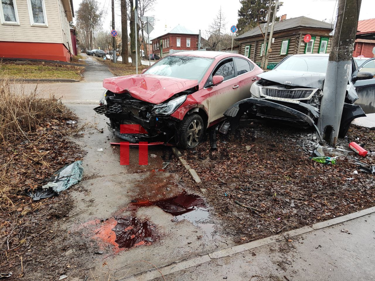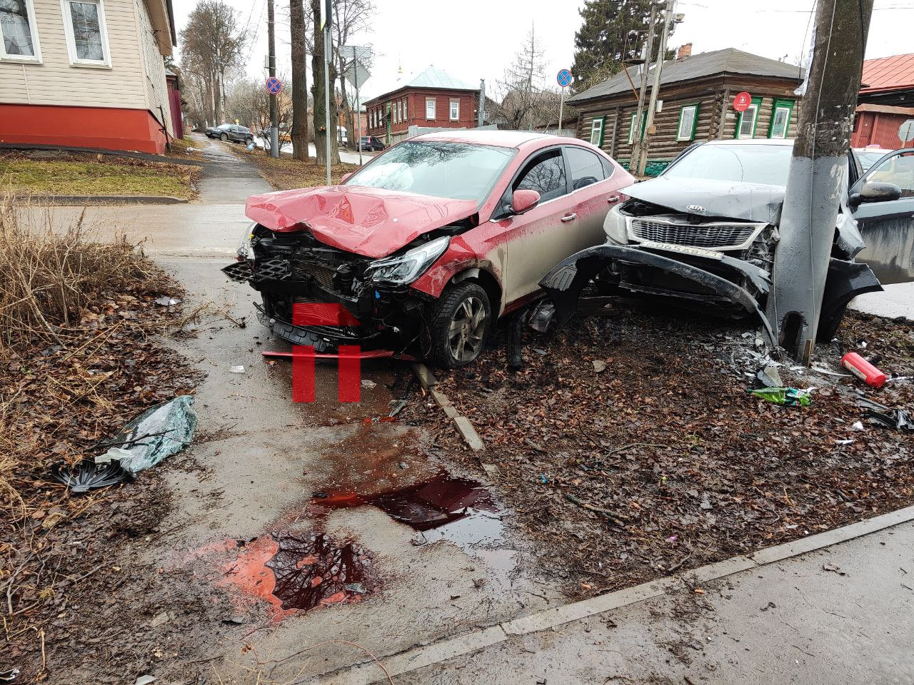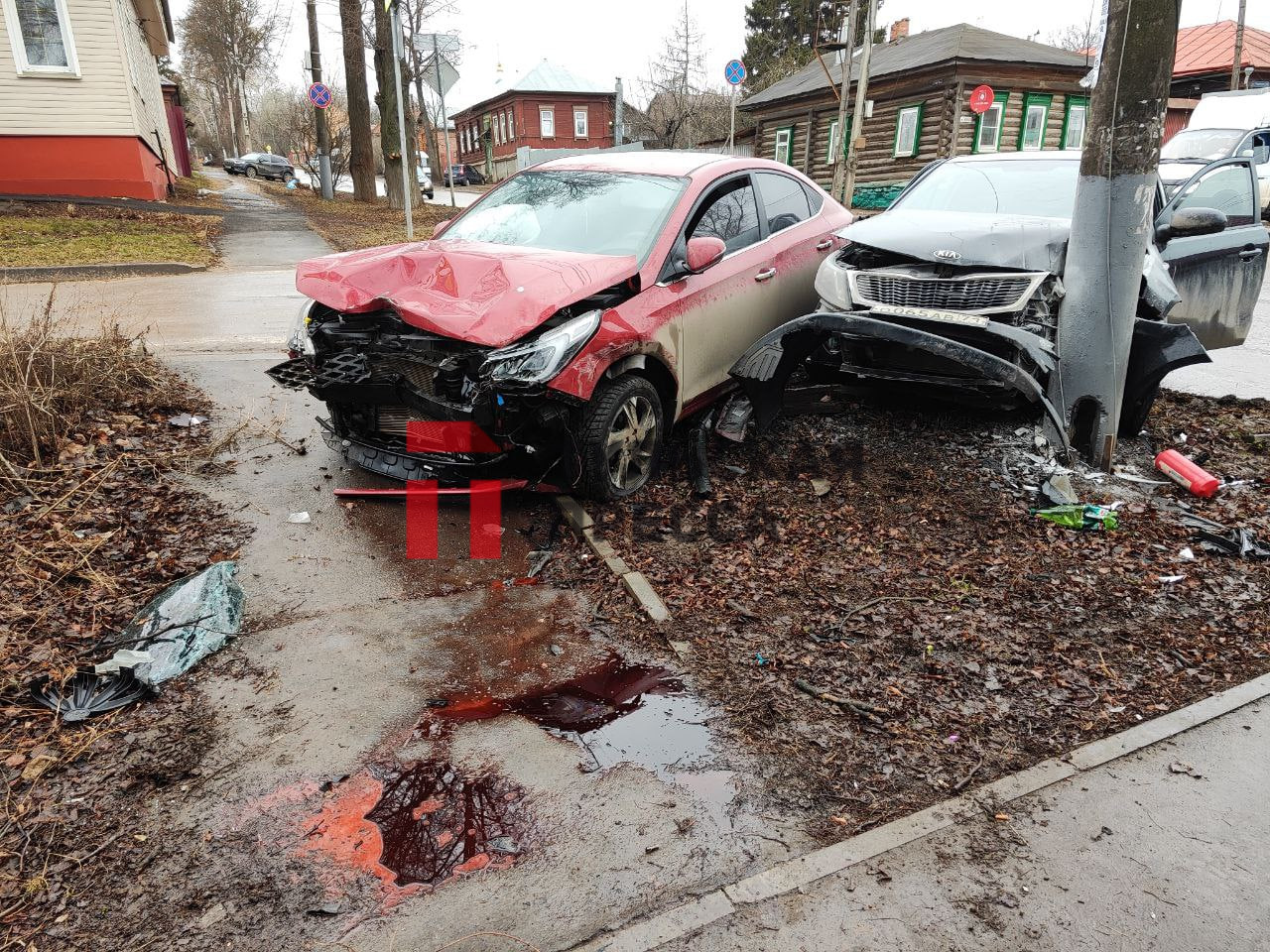 Утром 6 марта в Туле на пересечении улиц Льва Толстого и Буденного произошло ДТП. По предварительной информации, женщина на черной Kia, двигаясь по второстепенной дороге, не предоставила преимущества красному автомобилю. В результате произошло столкновение. Обе машины после улетели в опору ЛЭП.