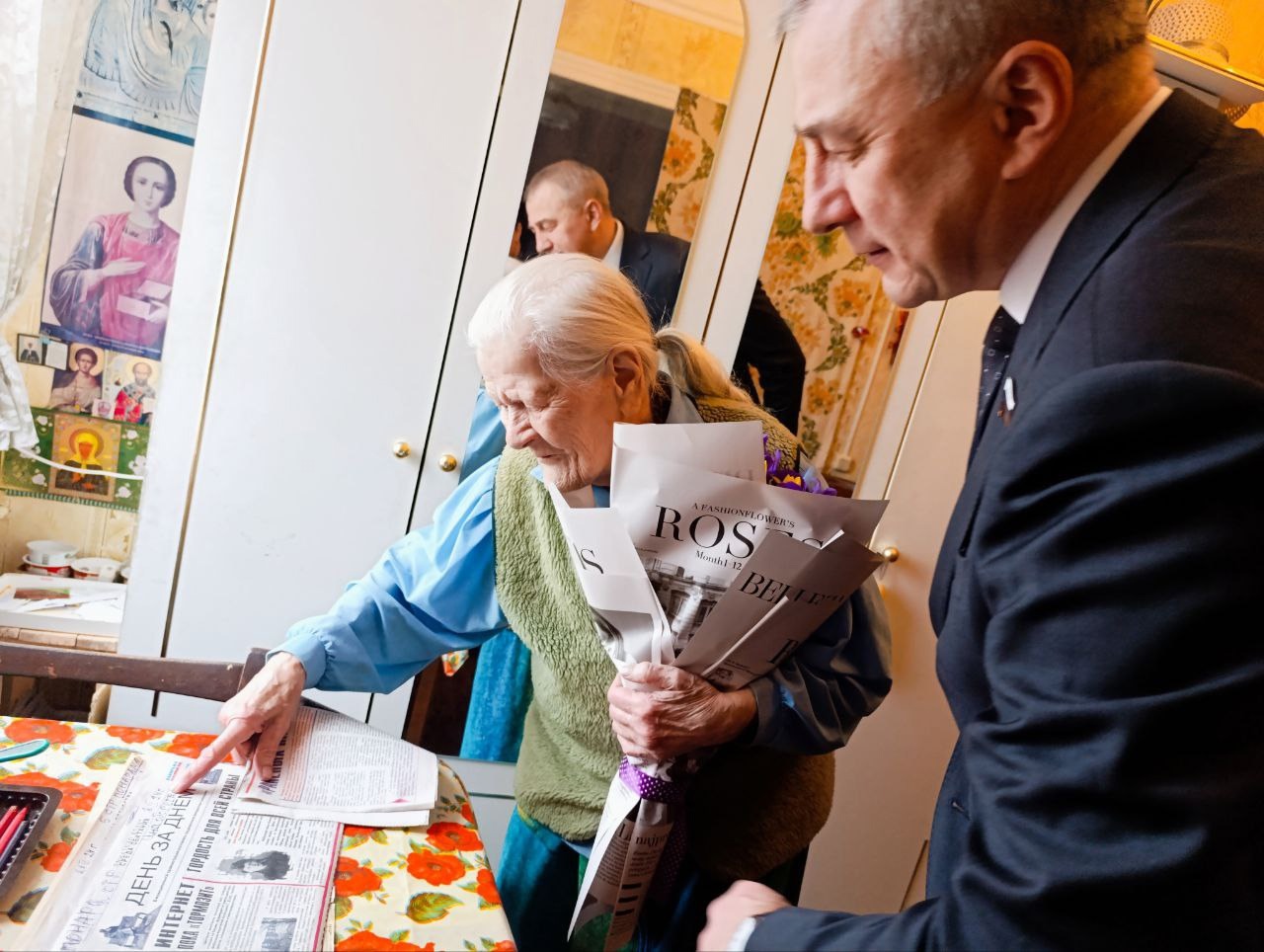Депутат навестил ветерана Великой Отечественной войны, почетного гражданин города Ефремова и Ефремовского района Анну Петровну Рыжих: в войну женщина спасла десятки советских солдат, прошла путь от Смоленска до Берлина. Также Сергей Балтабаев поздравил с наступающим праздником активистку, возглавлявшую комитет территориального самоуправления поселка, Софию Константиновну Глушич, многодетную мать, удостоенную медали «Материнская слава», Жанну Миледьевну Маркарян, и Анжелику Михайловну Артамонову, мать русского офицера.
