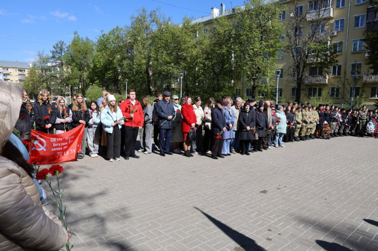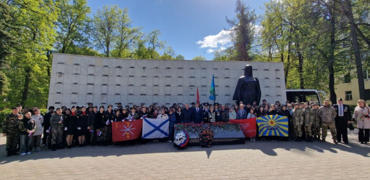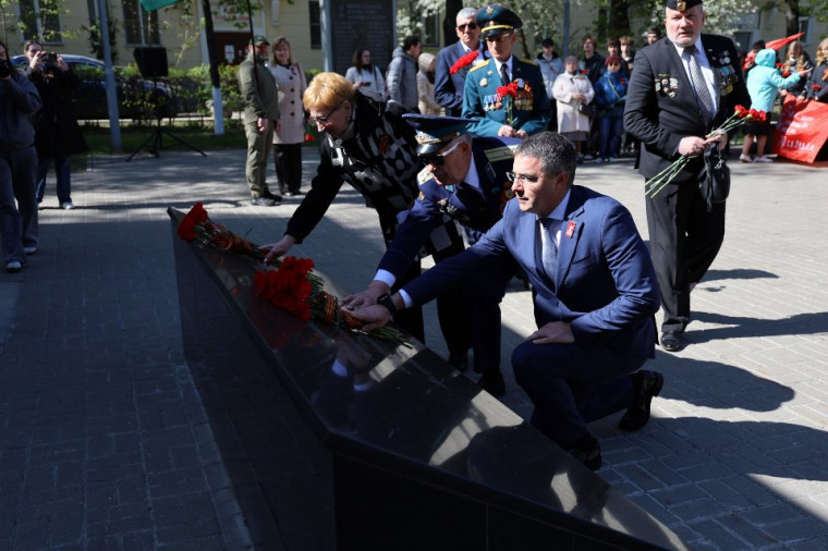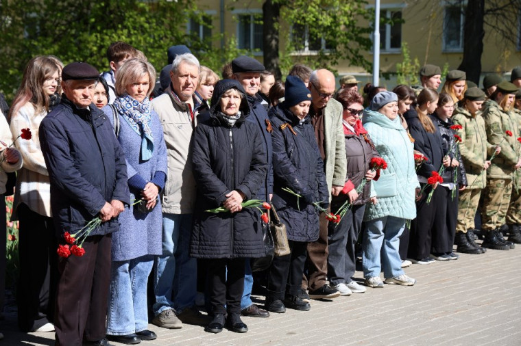 Память героев Великой Отечественной войны почтили минутой молчания. Затем состоялось возложение цветов к мемориалу.