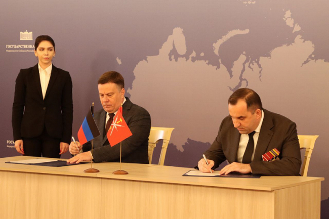 – Мы последовательно выстраиваем конструктивное взаимодействие с другими субъектами страны, в том числе с новыми регионами. Соглашения о межпарламентском сотрудничестве — хорошая основа для этого. В октябре 2022 года Тульская областная Дума подписала такой документ с Госсоветом Республики Крым, а теперь — с коллегами из Луганска и Донецка, — отметил Андрей Дубровский. — Тульская область активно взаимодействует с ЛНР и ДНР, поддерживает гуманитарные и экономические связи, сотрудничает в вопросах оздоровления детей и других сферах. Эта большая работа начата еще в 2022 году в рамках соглашения, подписанного тогда еще главой нашего региона, а сейчас помощником Президента России Алексеем Геннадьевичем Дюминым с Главой ДНР Денисом Владимировичем Пушилиным. Она продолжается и сейчас, вопросы помощи Донбассу и Новороссии на личном контроле у Губернатора Дмитрия Вячеславовича Миляева. В Мариуполе тульские специалисты продолжают восстанавливать целые кварталы, строить детские сады и школы. Новые соглашения позволят нам активизировать совместную работу по развитию законодательной базы и интеграции новых регионов в общую правовую систему Российской Федерации.