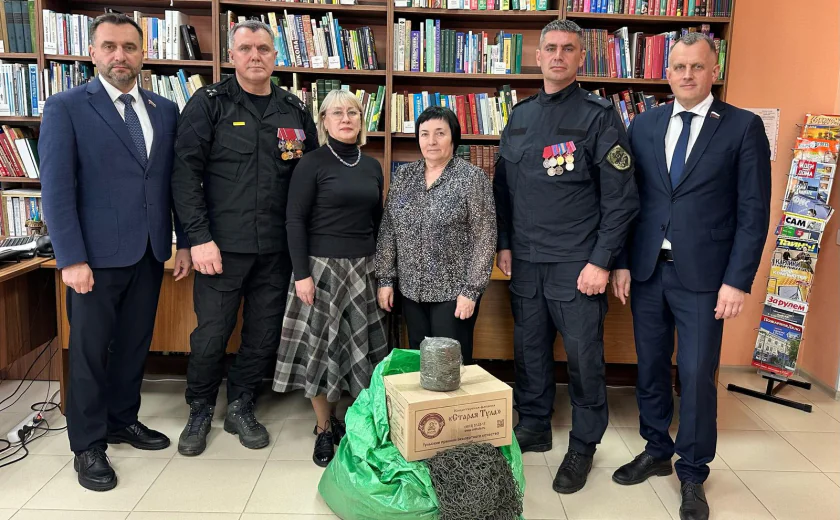 В Дубенской поселковой библиотеке, активно участвующей в подобных патриотических акциях и мероприятиях, депутаты передали волонтерам материалы для изготовления маскировочных сетей и тульские пряники для отправки нашим защитникам в зону проведения специальной военной операции.
