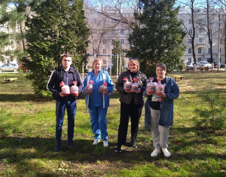 Пасхальные угощения тулякам вручили первые заместители председателя гордумы Анастасия Дементьева и Евгений Смолянинов, депутаты Ирина Рублевская, Олеся Филина, Александр Шахов, Алексей Ишутин, Владислав Трошин, Надежда Козьякова, Сергей Кожевников, Владимир Суслин.