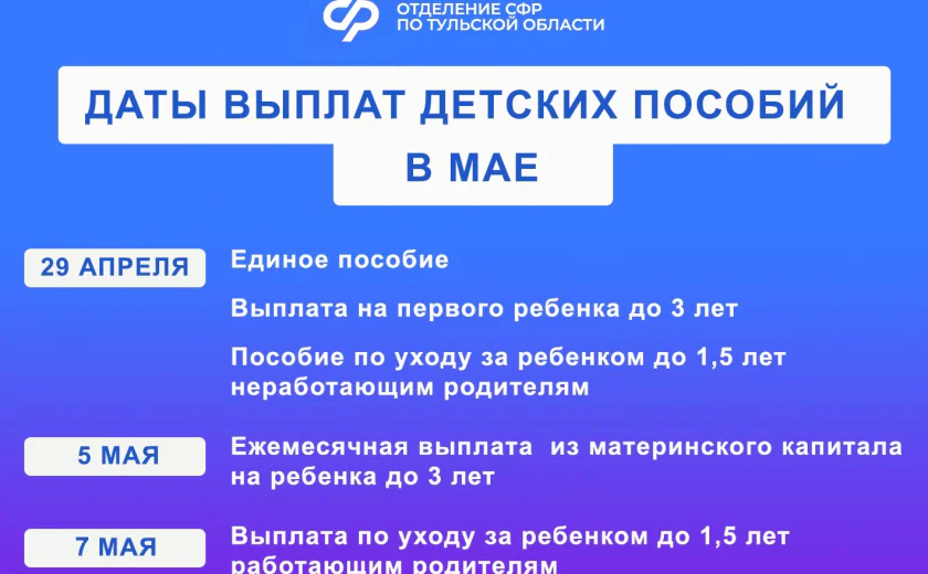 Социальный фонд РФ по Тульской области озвучил даты перечисления денежных средств семьям с детьми на карты: