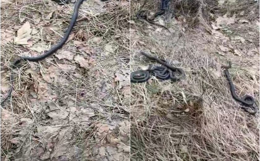 «Сейчас и в Подмосковье, и в Тульской области можно увидеть скопления ужей и на более сухих участках скопления гадюк. Все просто. Змеи вышли из зимовки: греются, питаются и размножаются, после чего расползутся в разные стороны. На видео — ужи. Видно, если присмотреться внимательней, желтые ошейнички. Кроме того, гадюки так быстро не ползают», — рассказали «Тульской прессе» специалисты.