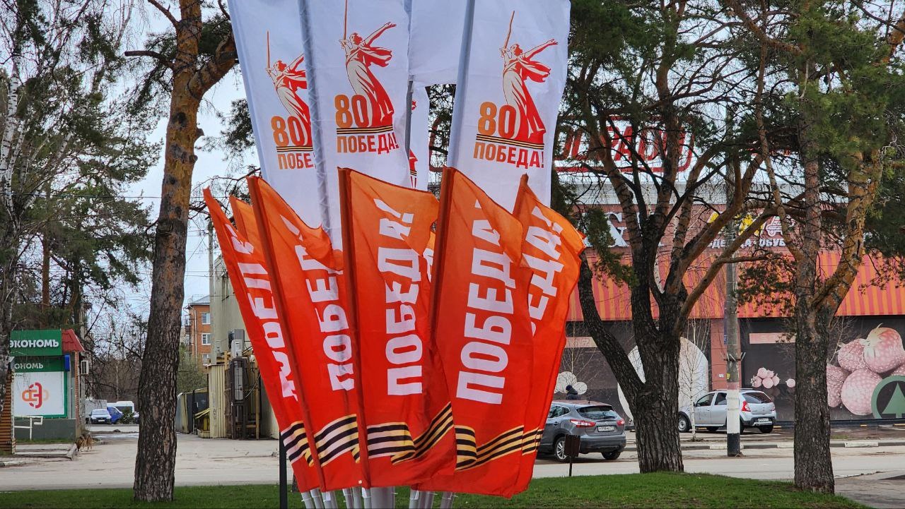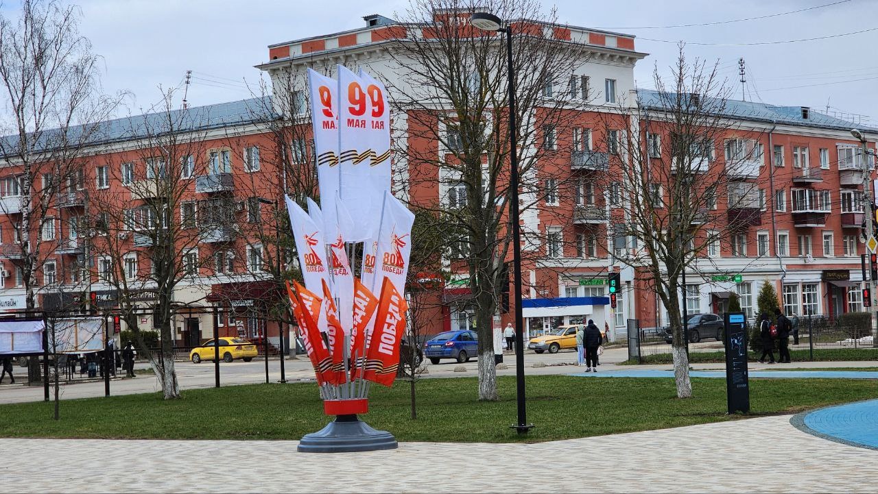 В центре города уже установлены дополнительные флаги с логотипом юбилея. На площадке возле Дома культуры им. В. С. Бондаря поменяли флаги, а до конца месяца обновят триколоры на колоннах. Также установлены праздничные баннеры. Все учреждения культуры и образования украсили окна и повесили плакаты с символикой Победы.