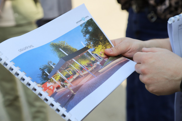 На территории общественного пространства планируют уложить плитку, установить освещение, три навеса, скамейки, качели и провести озеленение. В центре будут высажены клены и липы. Также появятся детская площадка и шкаф для буккроссинга.